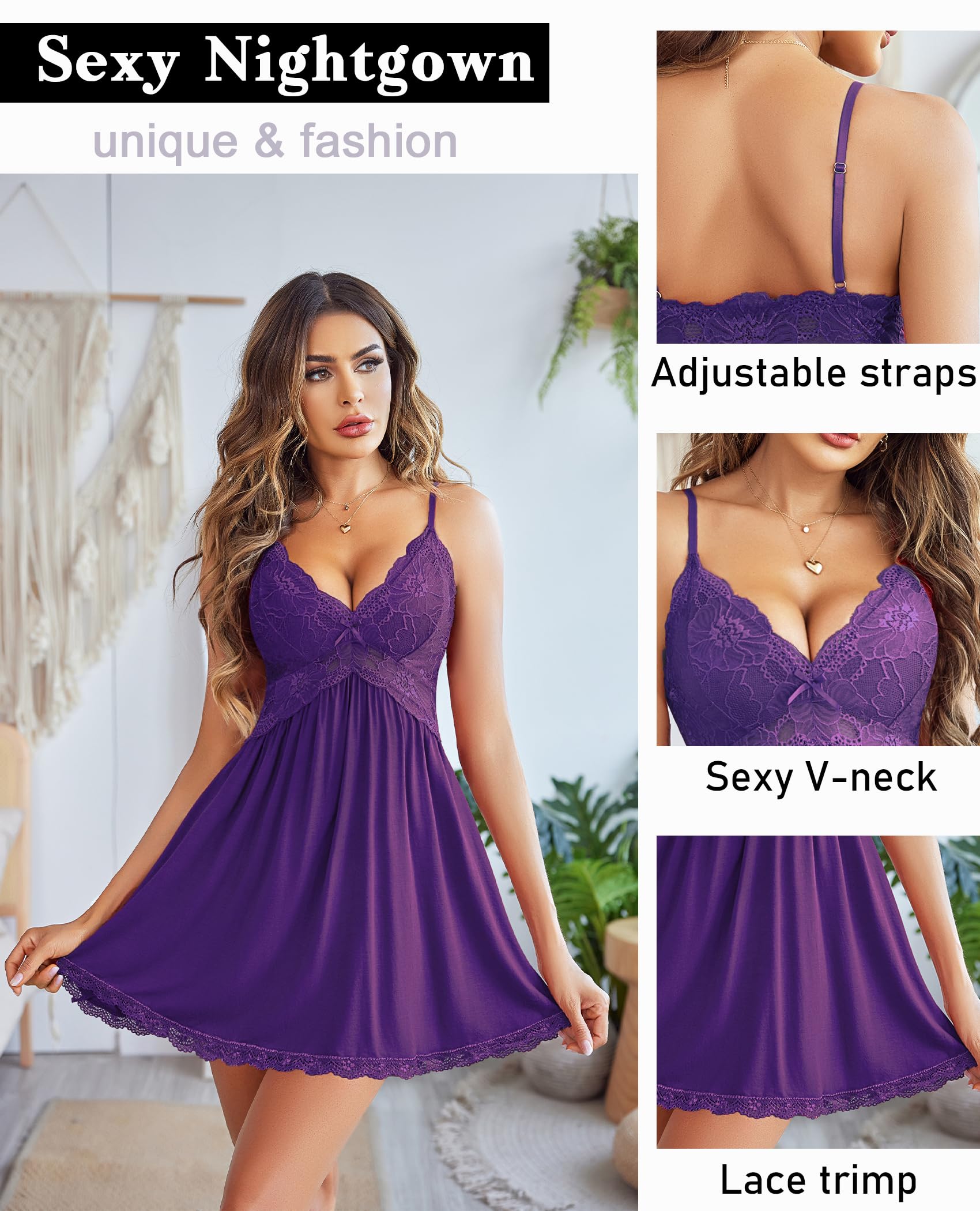 Babydoll nightgown, nighty for women sexy made of 50% Polyester and 50% Acrylic, super soft comfortable modal sleepwear with decent floral lace detail, no worries scratch the skin you will fall in love with the smooth feeling