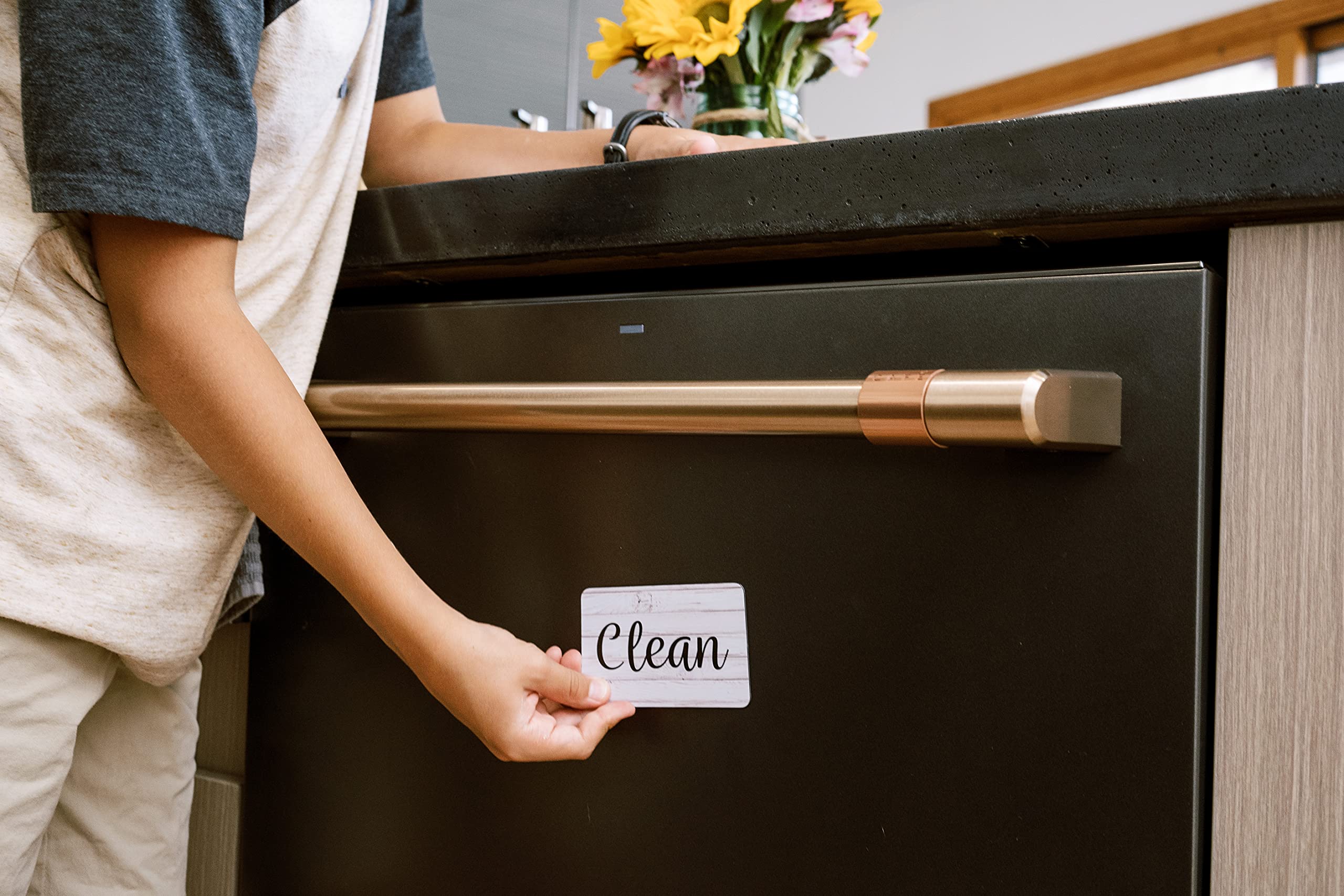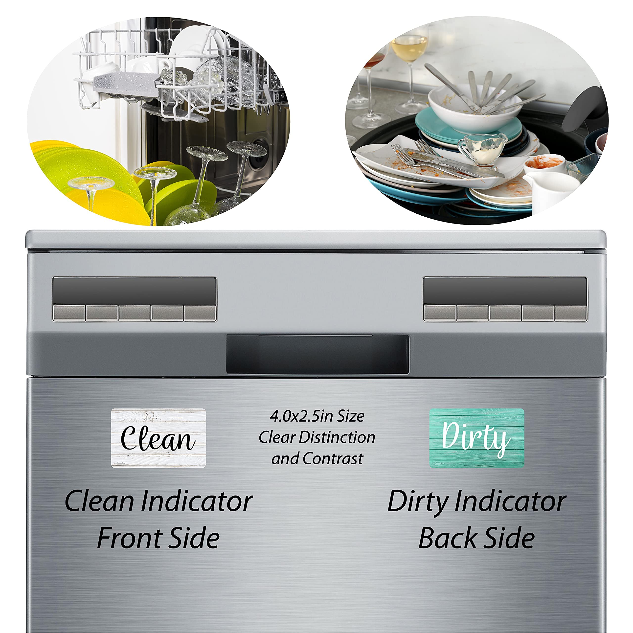 Less Dish Stress - Each dishwasher magnet clean dirty sign measures 4x2.5 inches, is reversible and easy to see from anywhere in your kitchen to eliminate guessing and improve kitchen storage and organization. Constructed of strong magnetic vinyl material to prevent unwanted surface scratching and provide a firm hold.