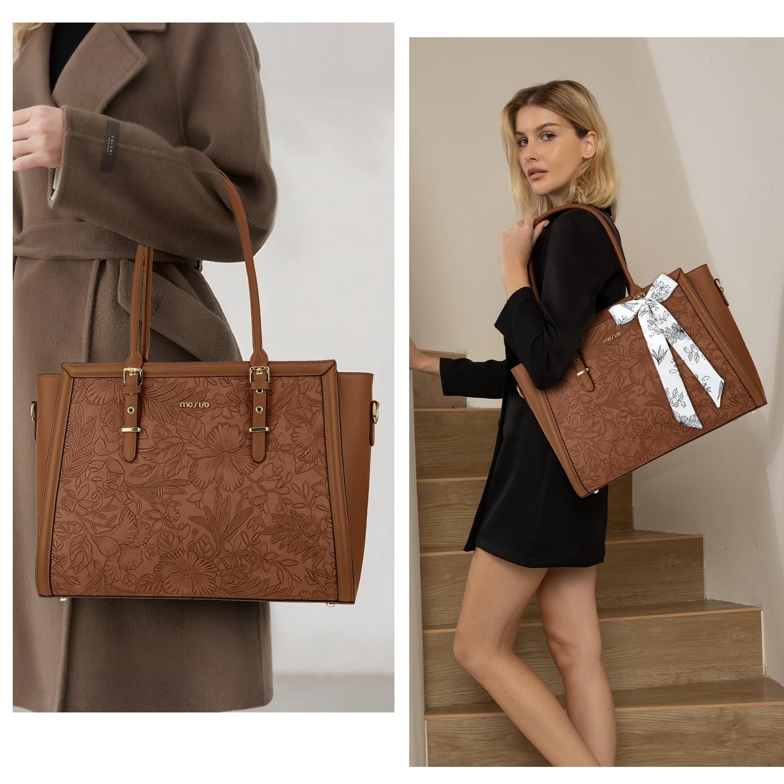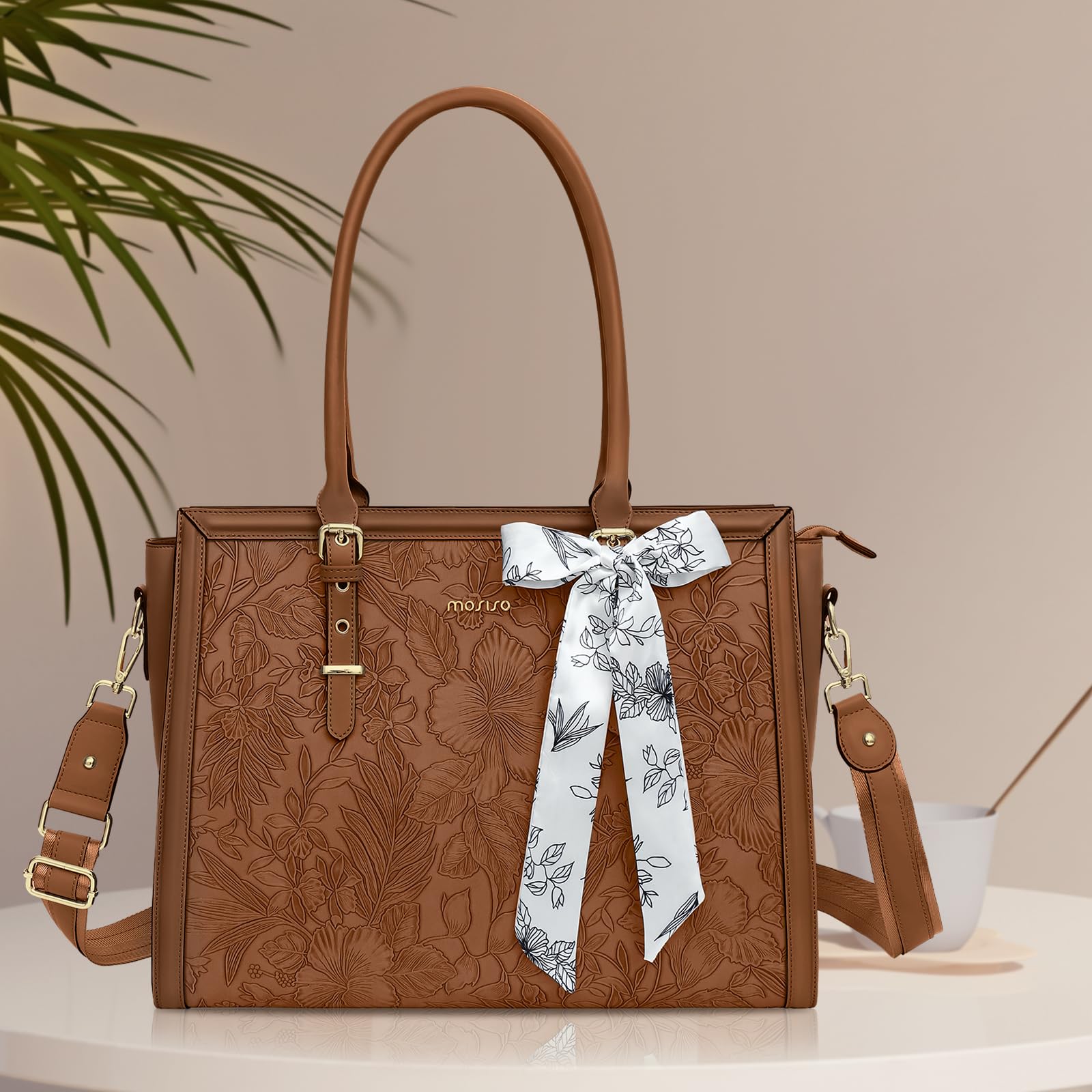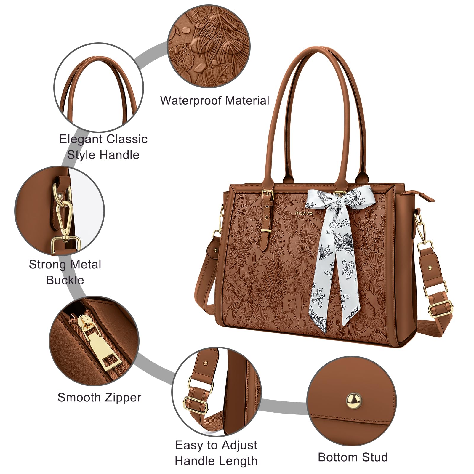 This attractive fashionable front embossed retro hibiscus waterproof PU leather laptop tote bag is ideal for daily use at shopping, office, business trip, work, weekend, outdoor activities, outdoor holiday, travel, gyms, camp, etc. Nice size admirably suits women and adults