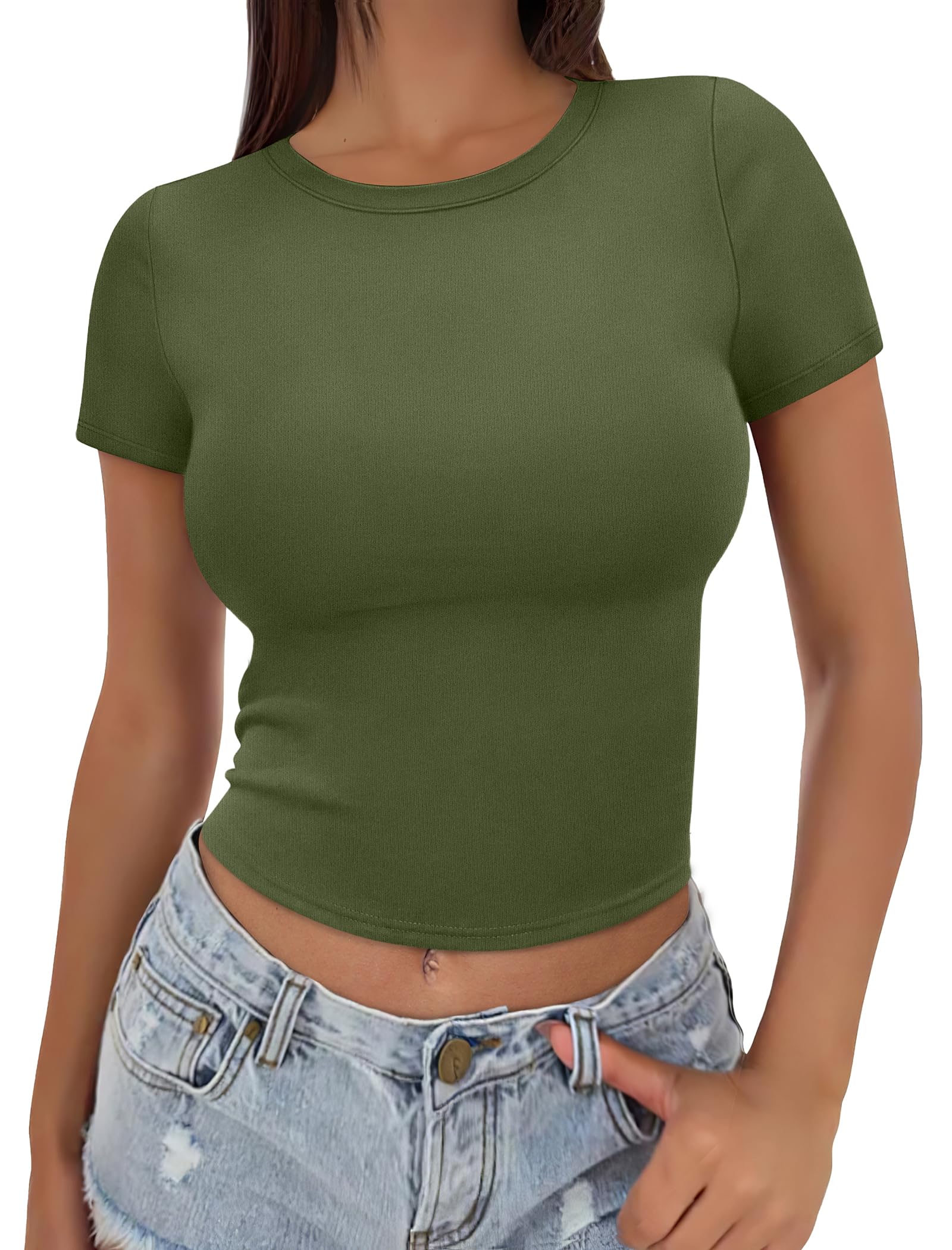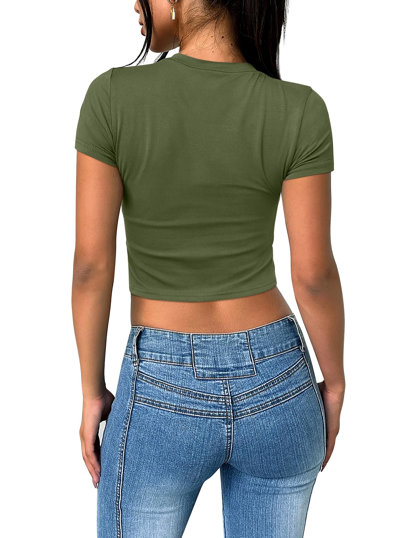 Y2K Design: This top features a cute, slim-fitted, and casual style with a crew neck and short sleeves. It comes in both cropped and regular styles, giving you the option to wear it as a regular top or fold it up for a trendy crop top look. Whether you're dressing up for a night out or going for a casual look, this top is perfect for any occasion.