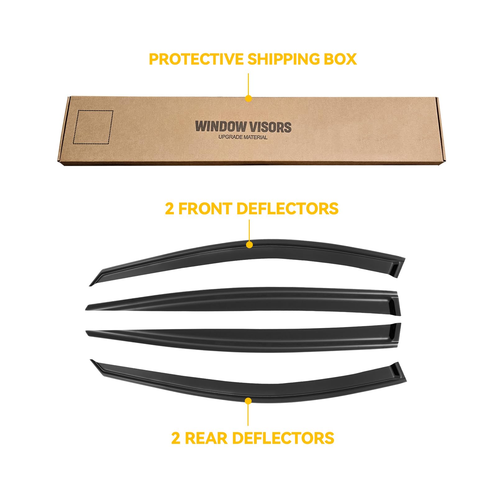 【Effective Design】The window visors are designed for the exact model of each vehicle, which helps reduce interior wind noise and mirror fogging, letting fresh air in and keeping the rain drops out at the same time.
