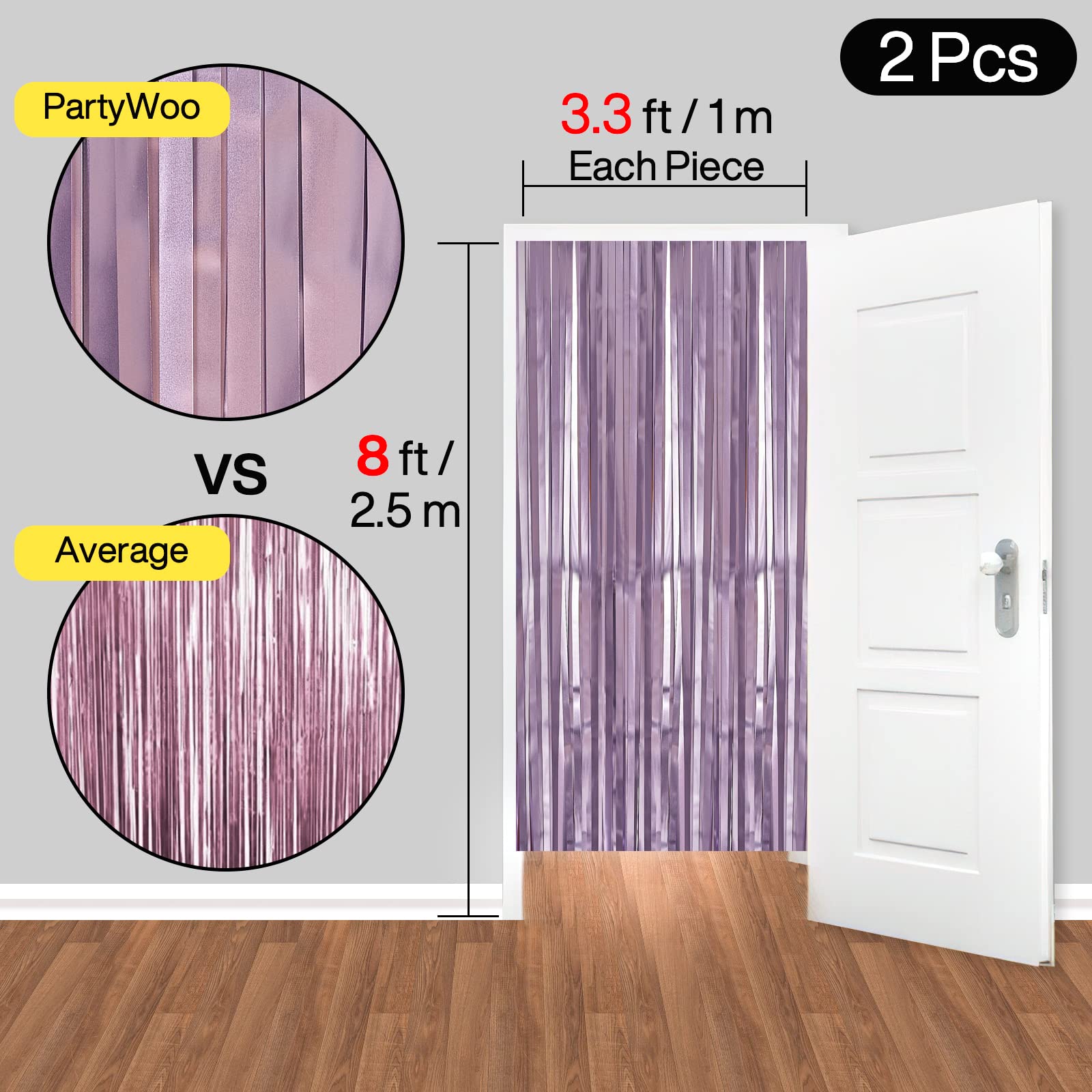 2-Pack Jumbo Metallic Light Purple Streamers [8.2×3.3 ft,total 27 sq ft]:Get 2 large rolls of dazzling purple streamers and purple foil fringe curtain. Suitable for creating a full purple foil fringe streamer backdrop or a sparkling tinsel backdrop.