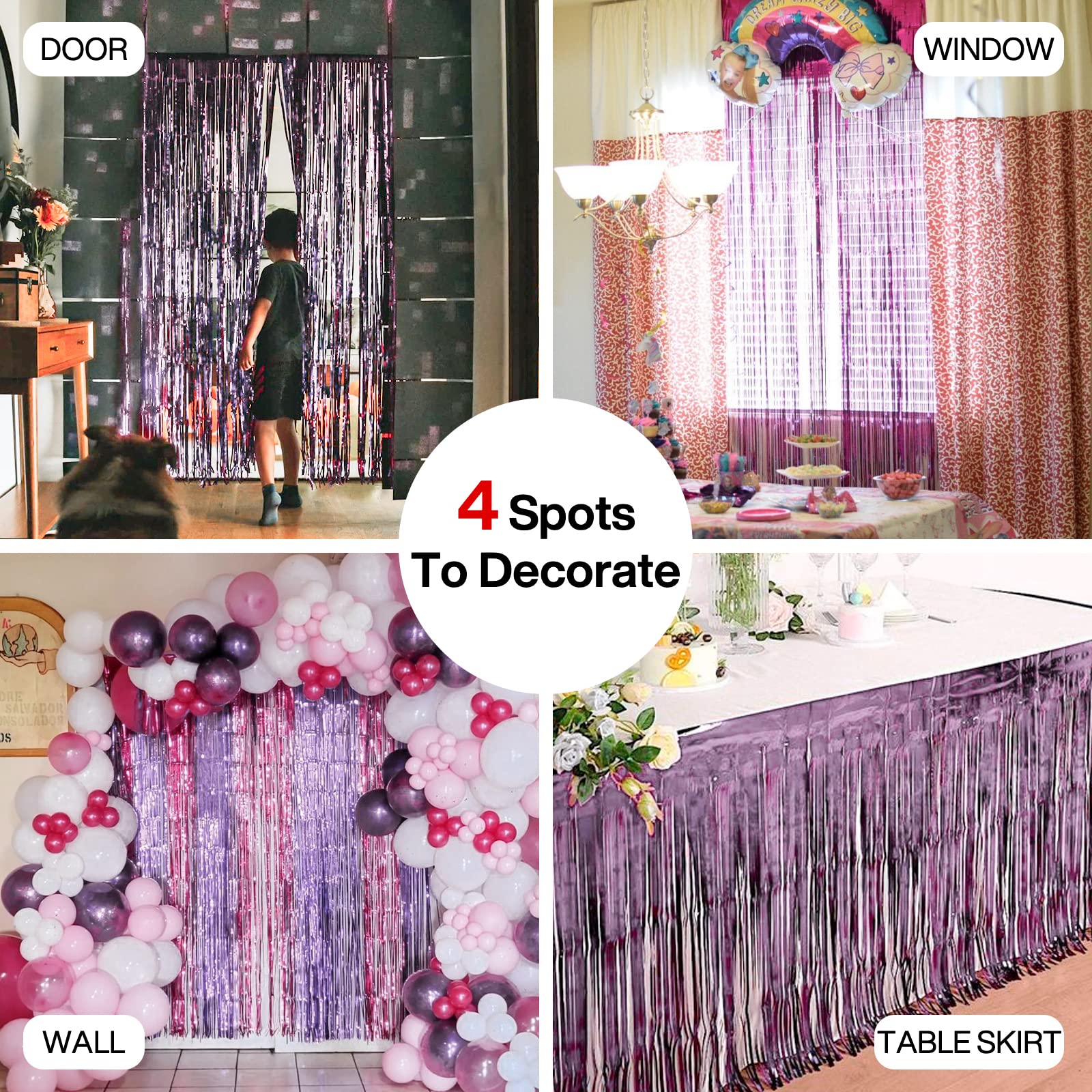 Shine for Every Occasion:Our purple foil fringe curtain delivers photographer-approved reflectivity, ensuring your photo booth backdrops and wedding decorations sparkle under lighting.Your Halloween party decorations will stay picture-perfect all night.