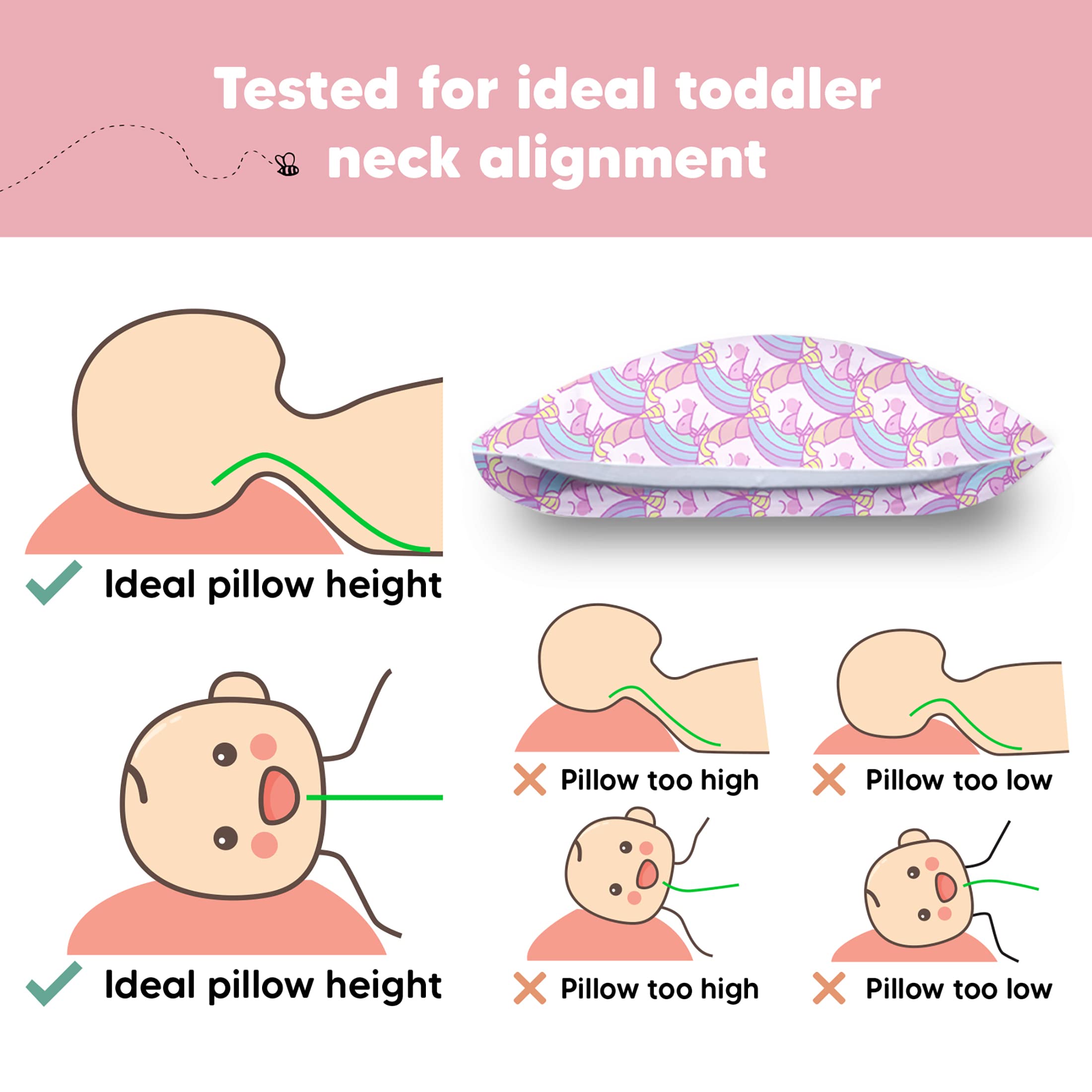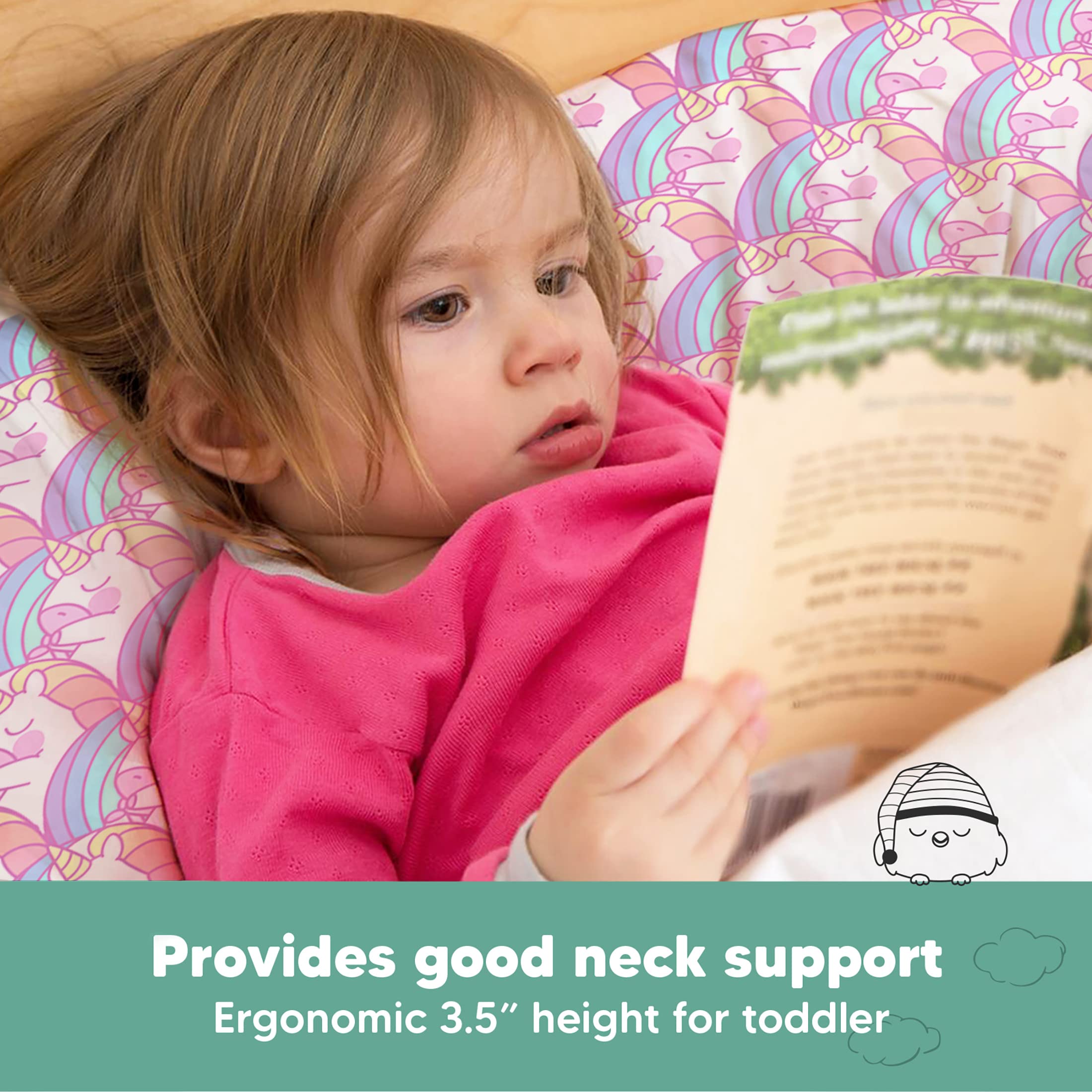 Perfect Kids Travel Pillow – My Little Dreamy Toddler Pillow with cute printed pillowcase is perfectly sized for a toddler bed. This kids pillow for sleeping is also handy for preschool naps, sleepovers at Grandparents’, traveling and road trips.