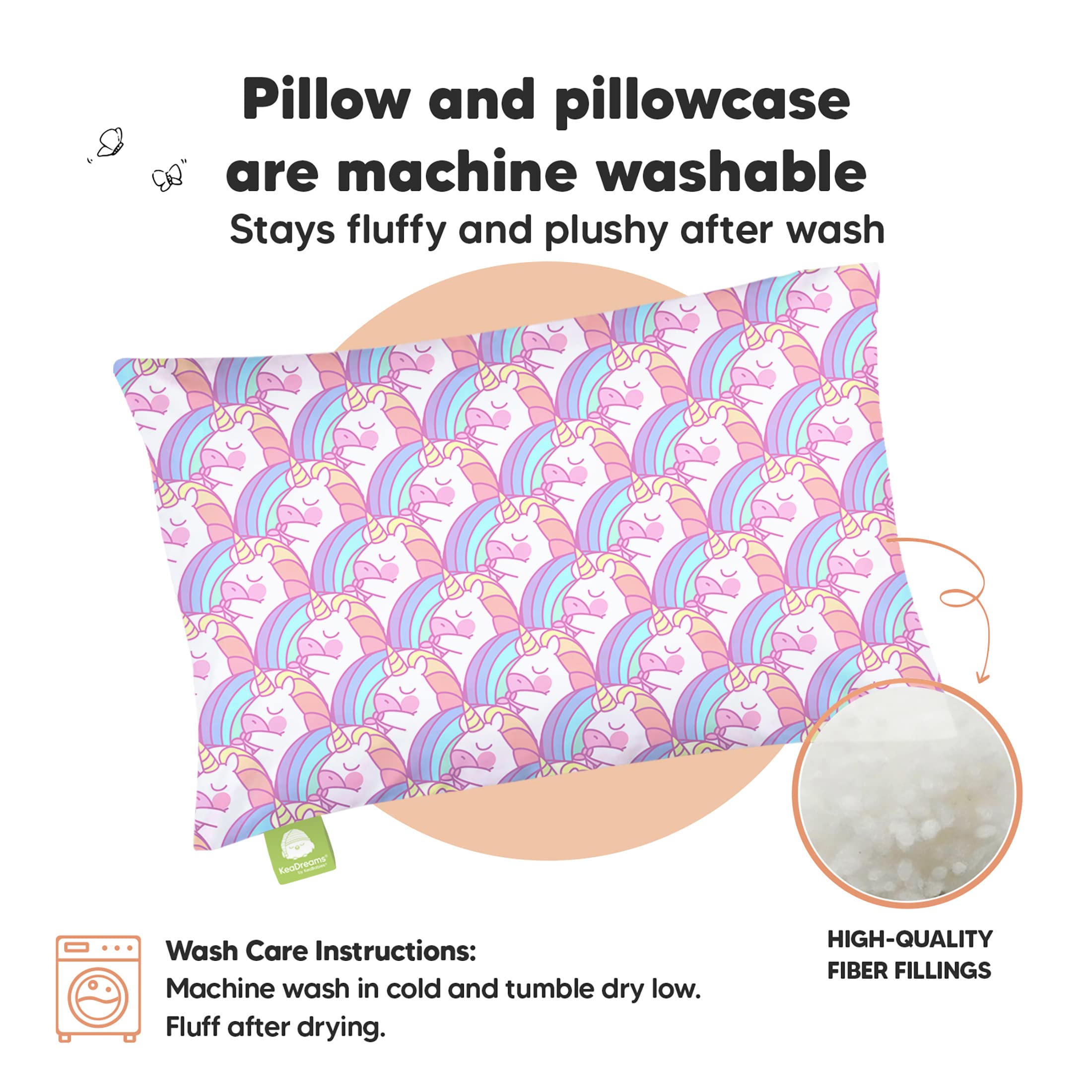 Durable & Washable - Our toddler pillows and toddler pillowcases are machine washable and dryable for easy cleaning. Made from high quality organic cotton pillow cover and fiber fillings, this small pillow stays fluffy, fresh and cute for regular use.