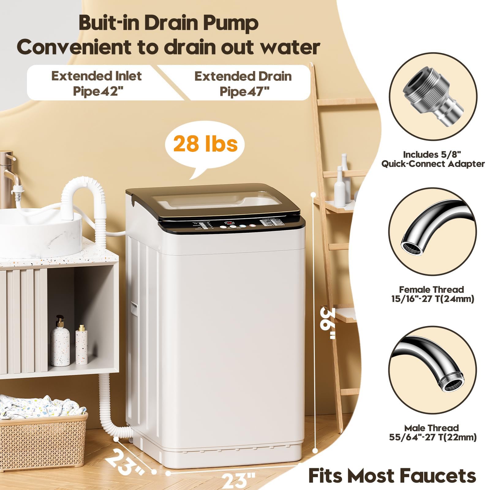 [Laundry Solution for Apartments] Our 28 lbs fully automatic washer and a 1.5 Cu.Ft max-capacity dryer, delivering same-day wash-dry-wear convenience—no more soggy overnight waits! Perfect for small-to-medium families (2-4 people) [Note: 2 packages come in]