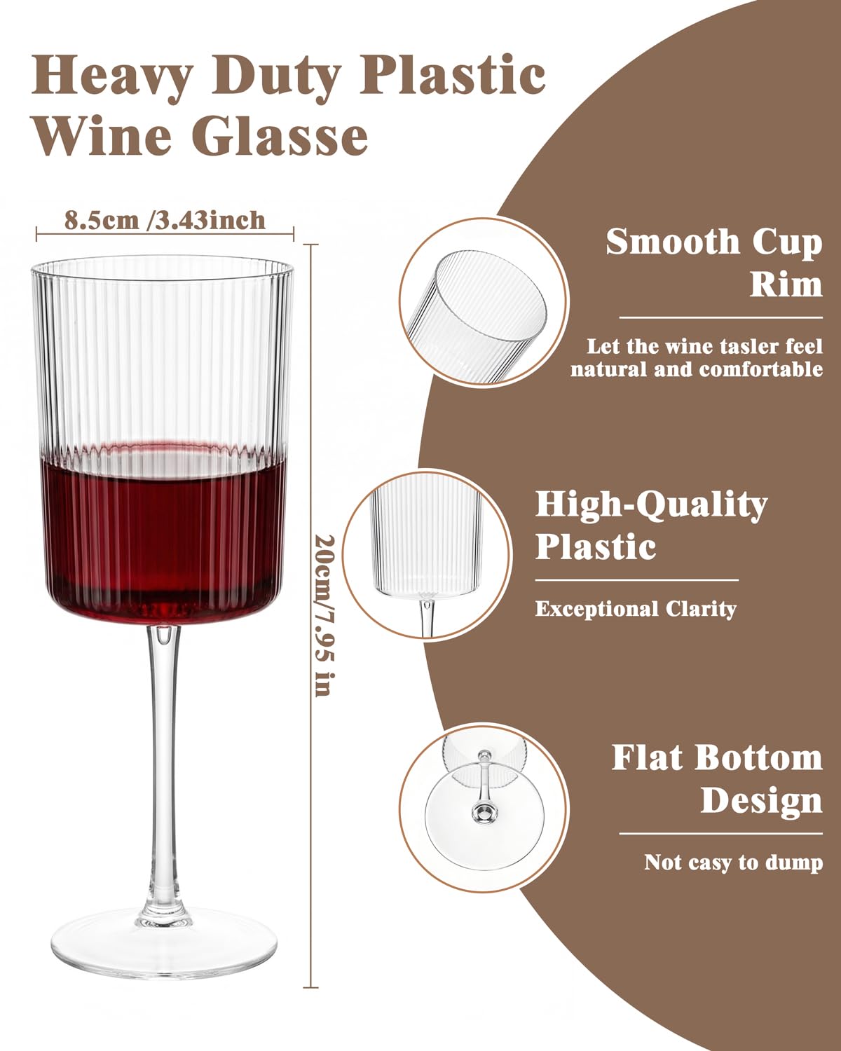 EASY PORTABILITY:Our plastic ribbed wine glasses are strong and less likely to break than glass, so everyone at the party can use them safely and securely, and the plastic square wine glasses are easy to carry, so picnics can be taken outdoors with confidence.