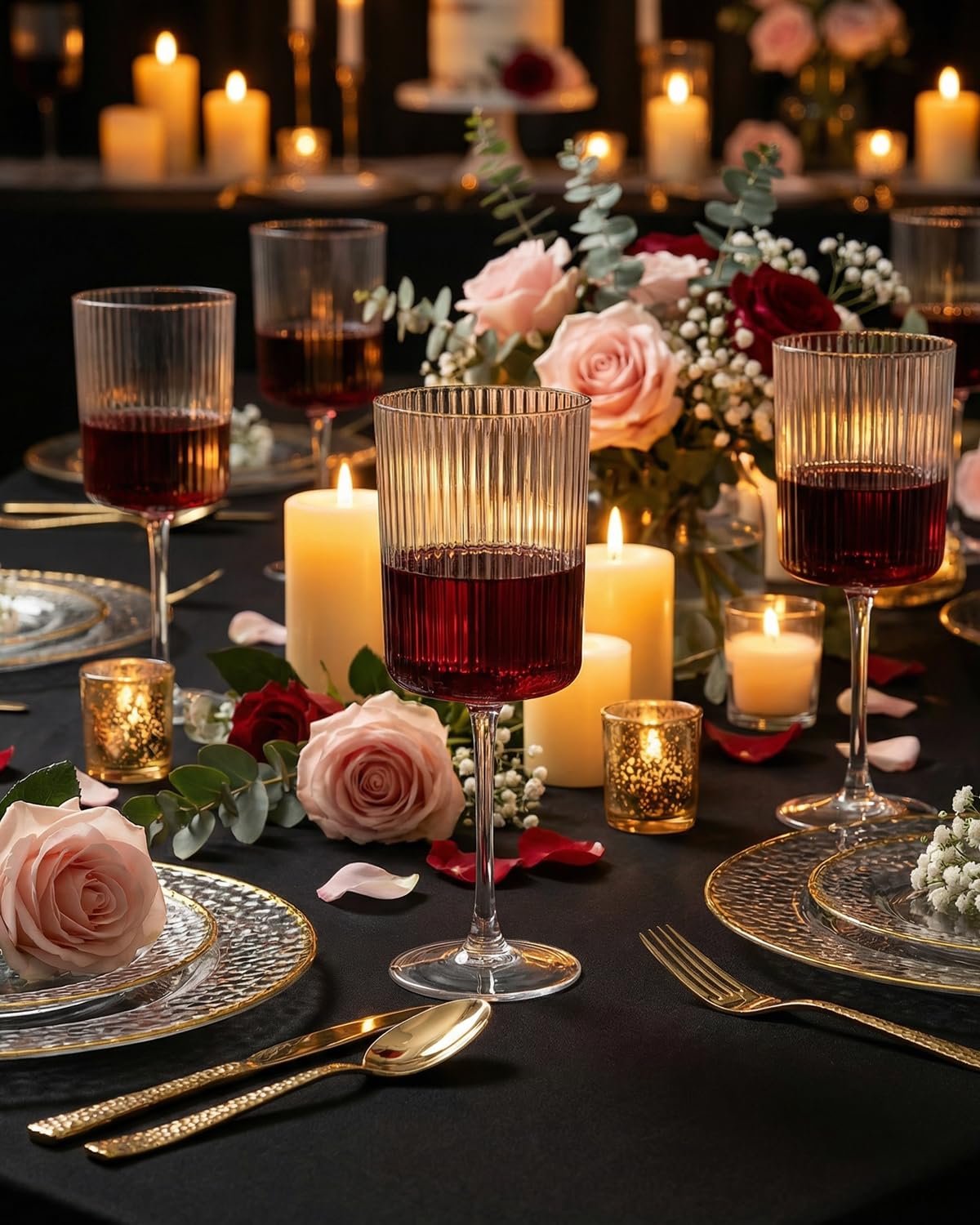 COST SAVINGS:These elegant ribbed wine glasses support recycling and reuse, you can also choose to just throw them away after the party, and if you break these plastic square wine glasses, the cost of losing them is definitely lower than glass glasses.