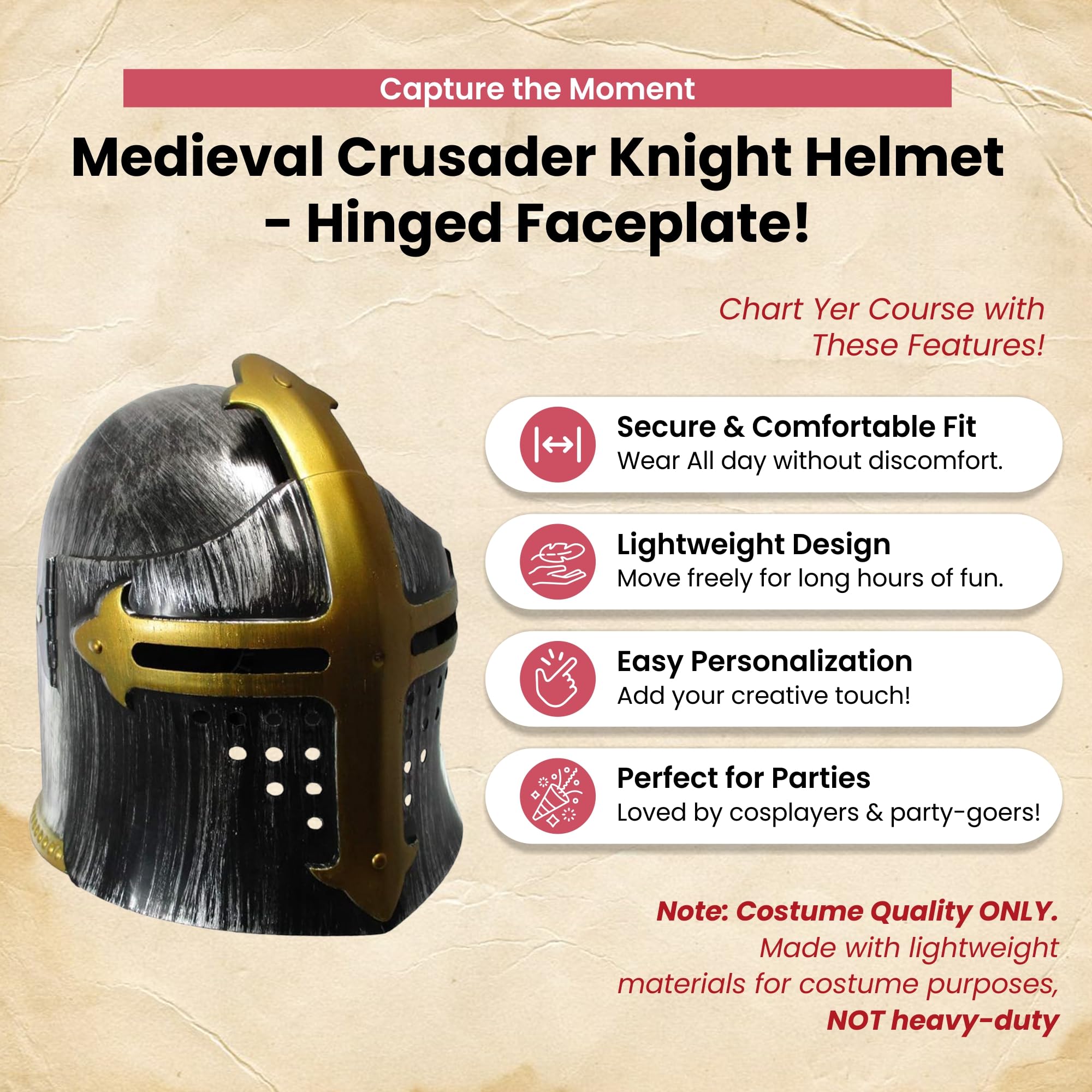 Medieval Crusader Knight Helmet With Folding Face Mask For ages 14 and up