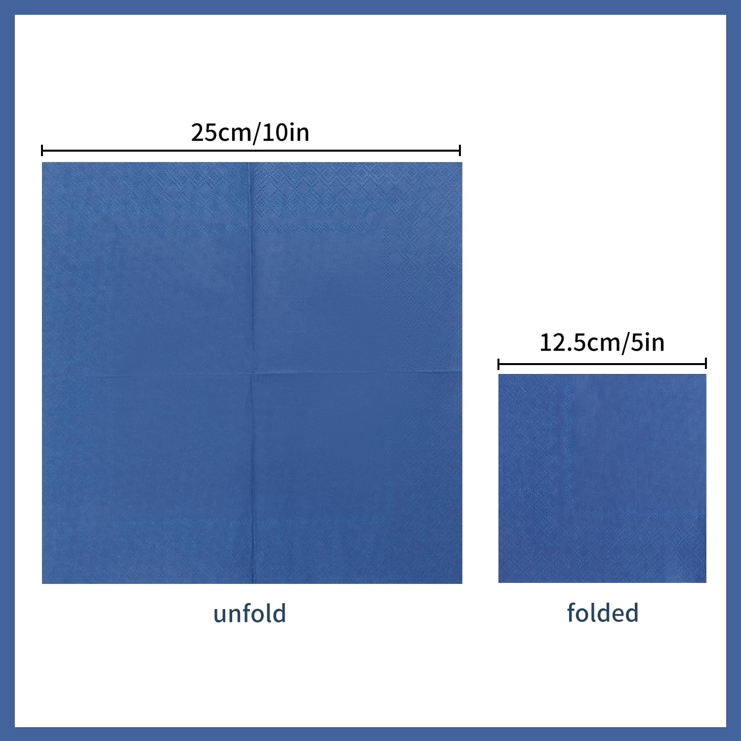 100 pieces of 2-ply paper napkins. the folded size of this napkin is 5 x 5, and the unfolded size is 10 x 10 inches. Multiple Uses - Our disposable cocktail napkins can be used for a multitude of uses. Including at your cocktail parties, weddings, bars, cafes, or any occasion. you can use these green cocktail napkins to decorate your luncheons, dinners, weddings, anniversaries, birthday parties, baby showers, outdoor BBQs, and so on, adding a fresh atmosphere to your party