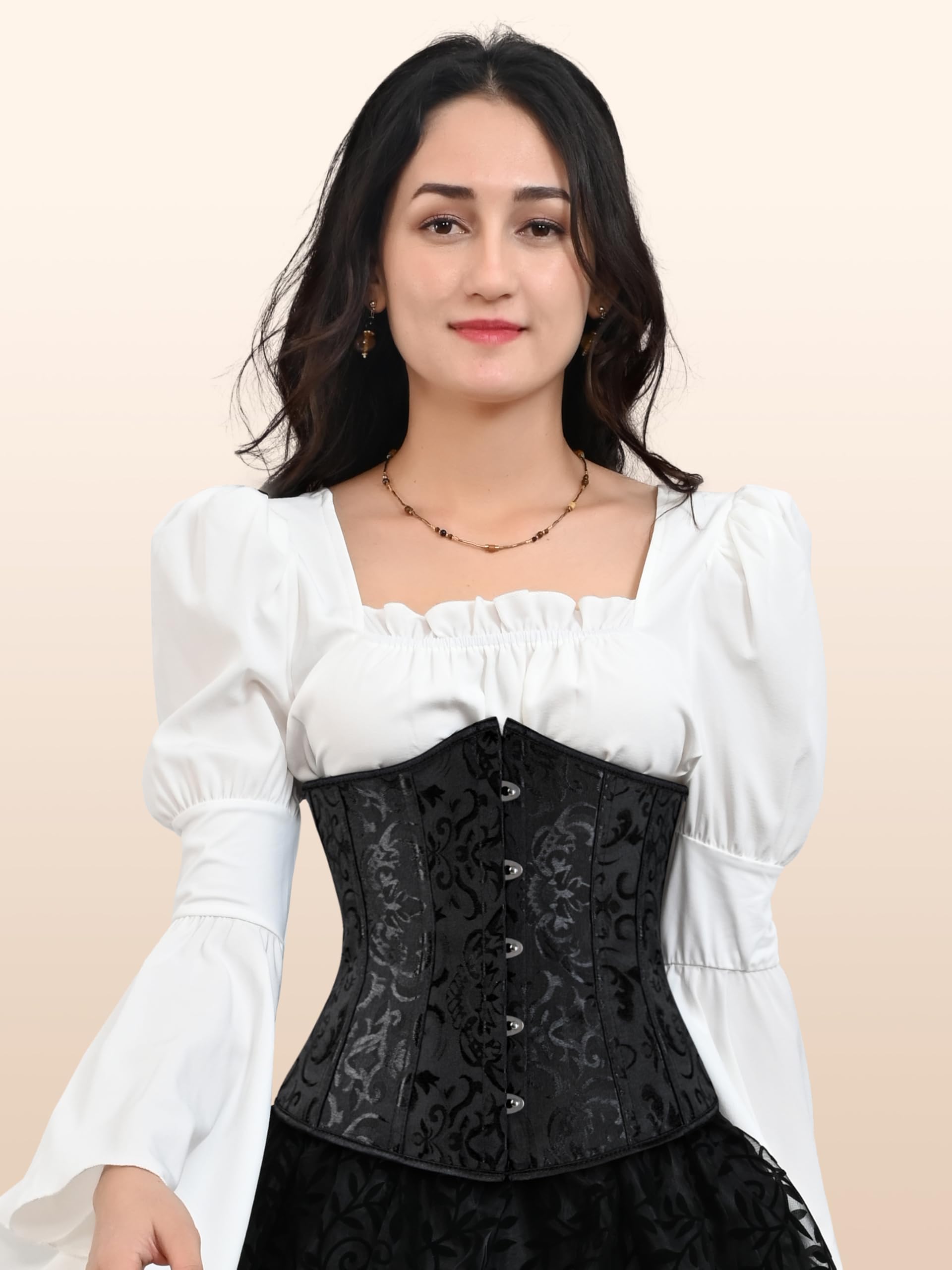 Underbust corset: Gothic to renaissance-ready crafted with simple style that can be created to every styles you want for authentic vintage appeal,this underbust style offers half coverage while accentuating curves,perfect for historical reenactors and fashion-forward women,the built-in modesty panel enhances authenticity for vampire,witch,or pirate costumes,pro tip: pair with high-waisted skirts or layered dresses for instant gothic glam.