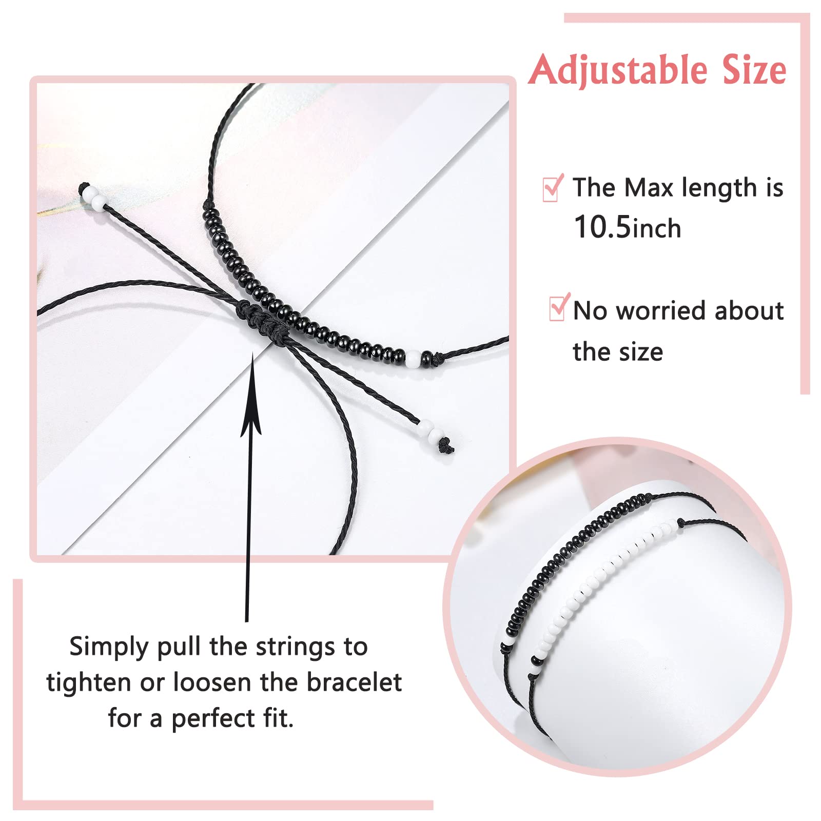 Material & Size: This bracelet is made from nylon rope, comfortable to wear. The max length is 10.5", no worried about size, simply pull the strings to tighten or loosen the bracelet for a perfect fit. Not easy to break, suitable for women and men.
