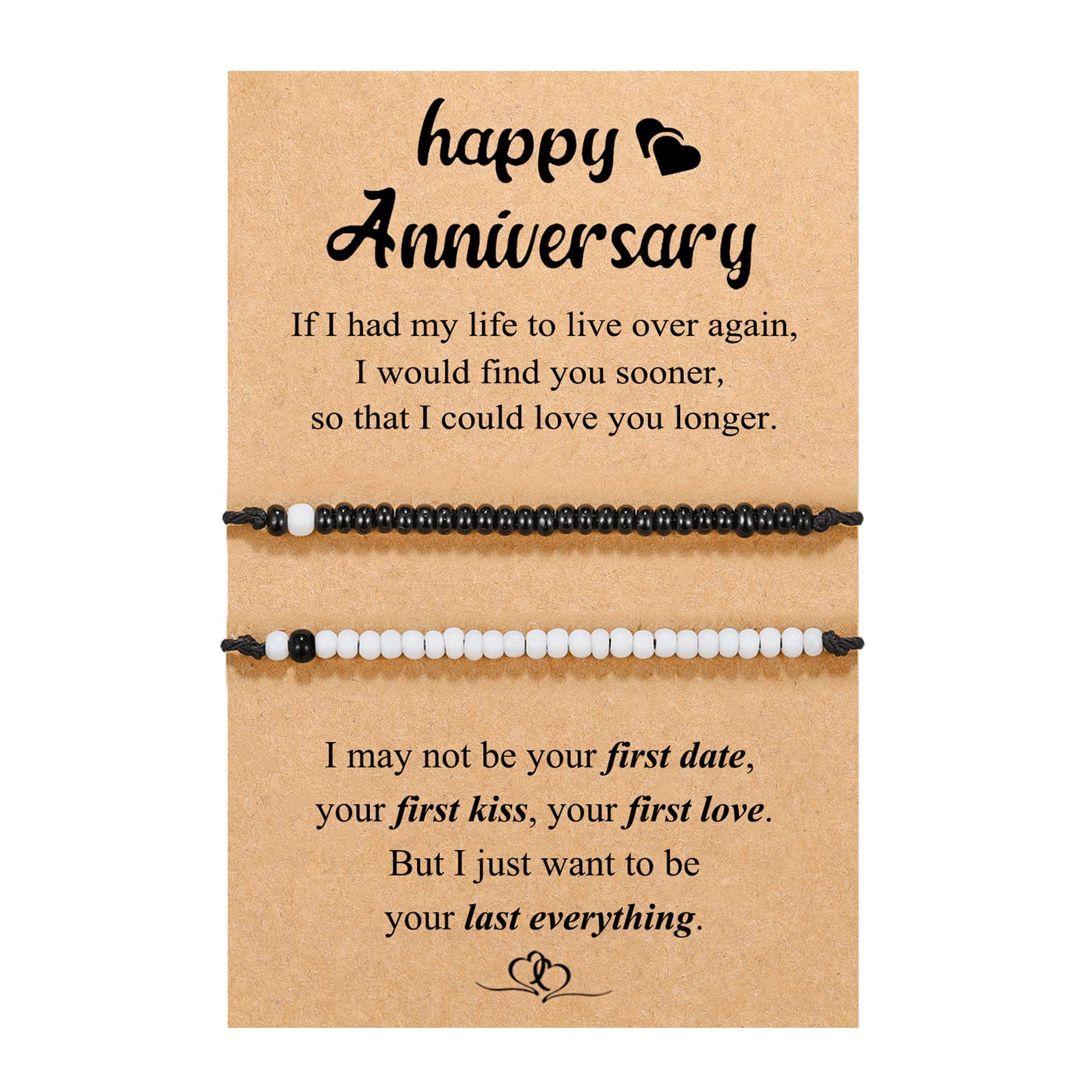 Anniversary Bracelets For Him Her: "I may not your first date, your first kiss, or your first love. But i just want to be your last everything". One for you and one for him/her, a great way to share your memories and story.