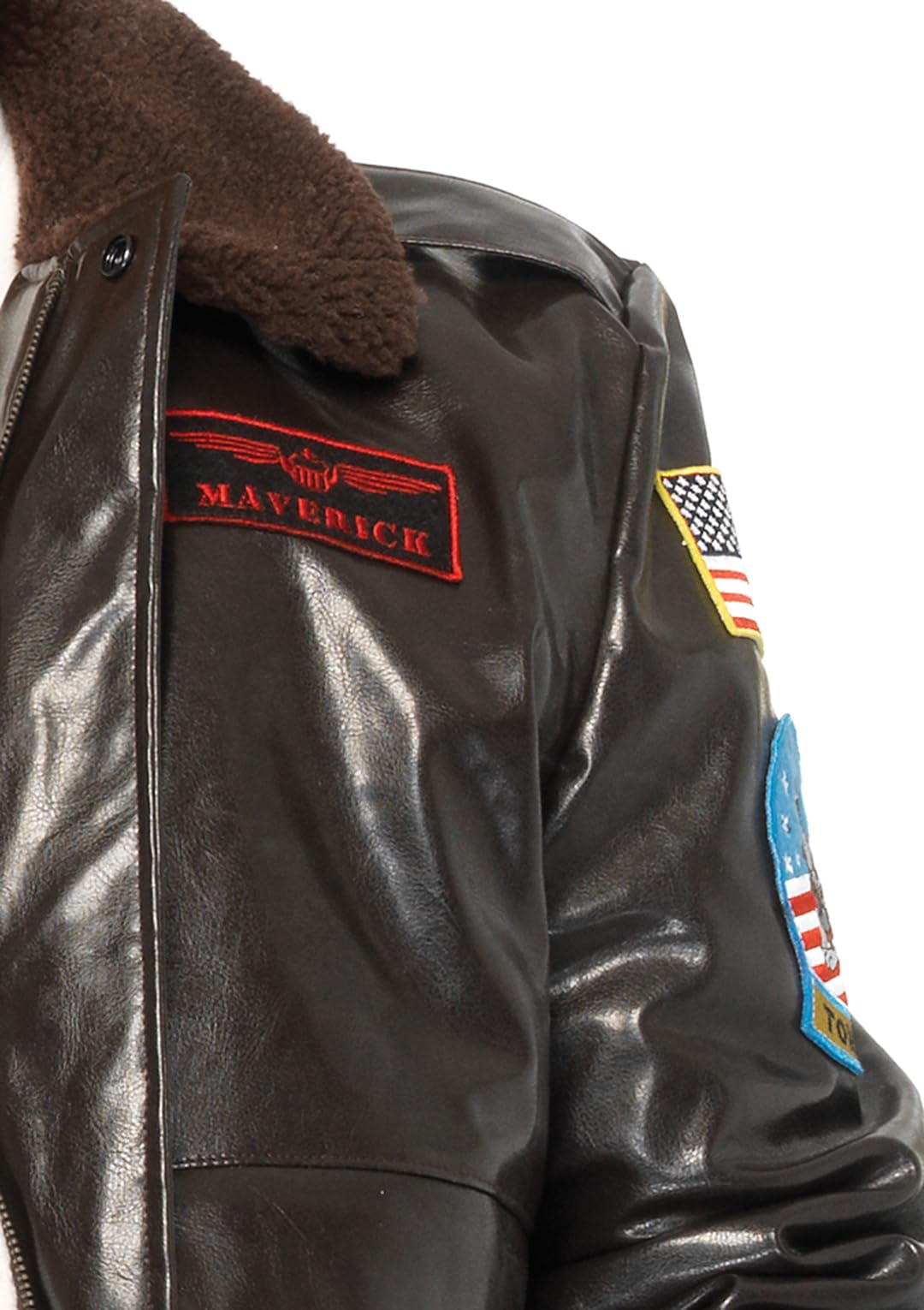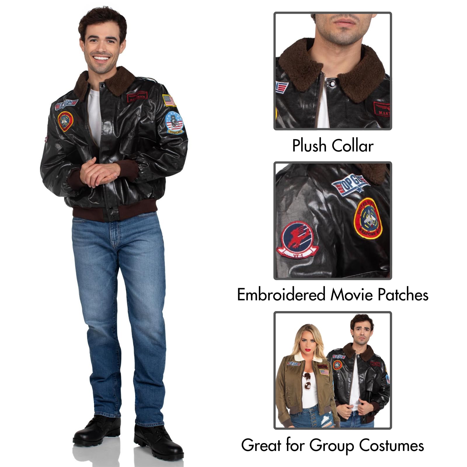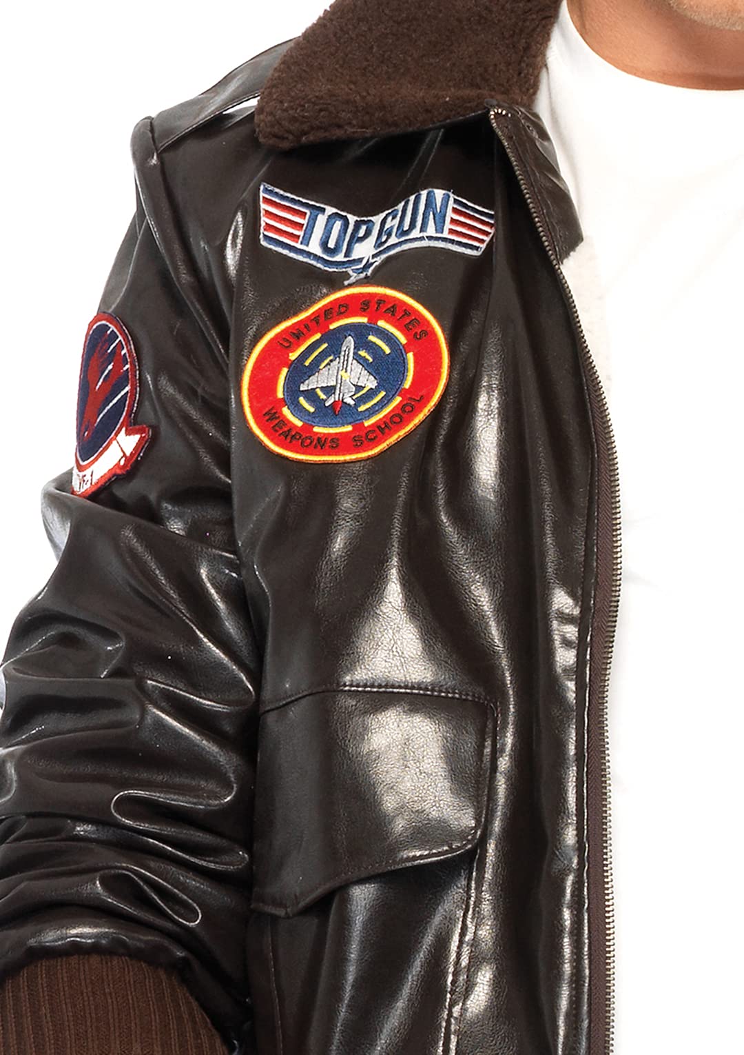 From Halloween to casual wear, the Official Top Gun Bomber Jacket is ready to go when you have a need for speed; Featuring a leather-like vinyl, plush collar, and embroidered patches