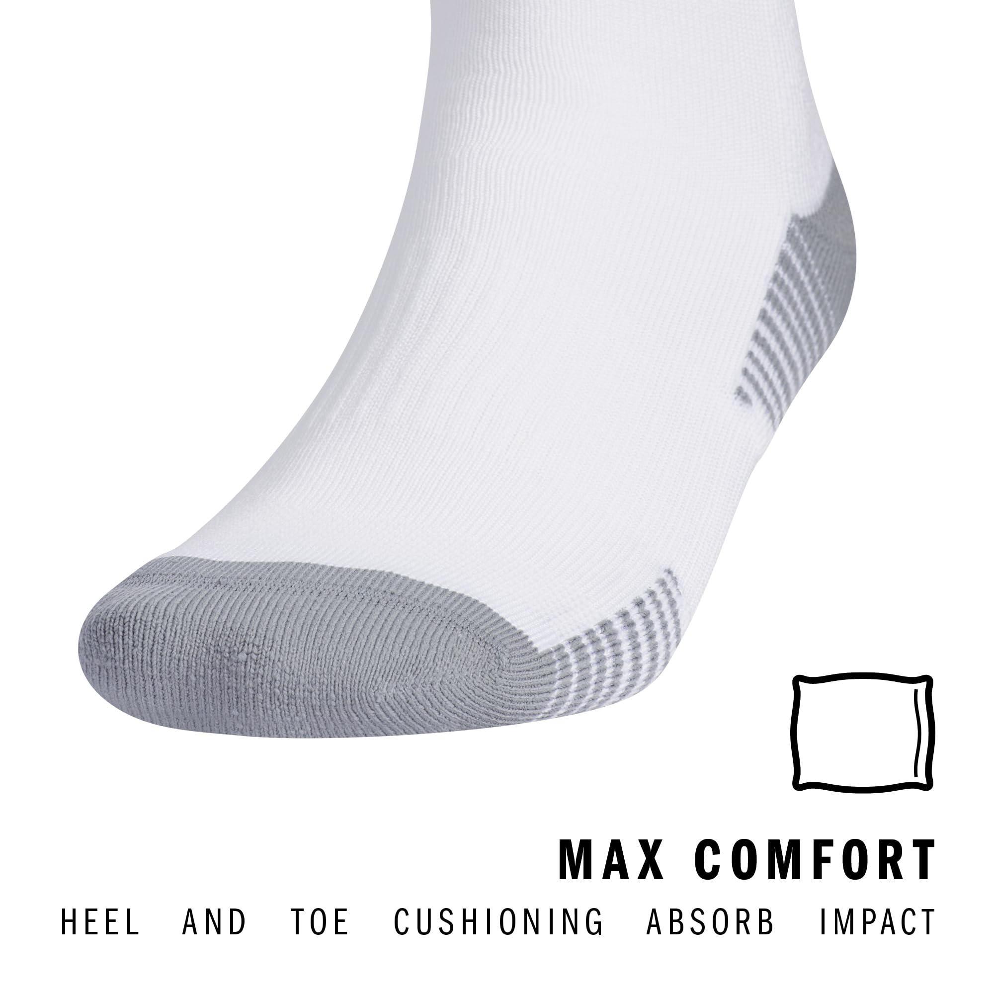 Description Get ready for the game with these adidas soccer socks, designed to elevate your performance on the field. These womens and mens socks offer moisture-wicking yarn to keep your feet dry from sweat. The classic 3-Stripe finish at the welt and center front Badge of Sport logo add a touch of style that's synonymous with adidas soccer. Whether you’re in the midst of a competitive match or a casual game, cushioning at the heel and toe provides the shock absorption you need. The adidas Copa Zone Cushion 5.0 socks feature compression for a secure fit and additional support. These womens and mens compression socks include arch and ankle support, providing stability. The airy mesh and lightweight construction offer a close fit and excellent ball touch, making them ideal running socks for men or women who seek both comfort and performance. These over-the-calf socks offer the classic fit and protection you'd expect. Perfect for both casual use and high-intensity activities, these socks are a versatile addition to any athlete’s wardrobe. Experience the superior quality and functionality of adidas soccer socks.