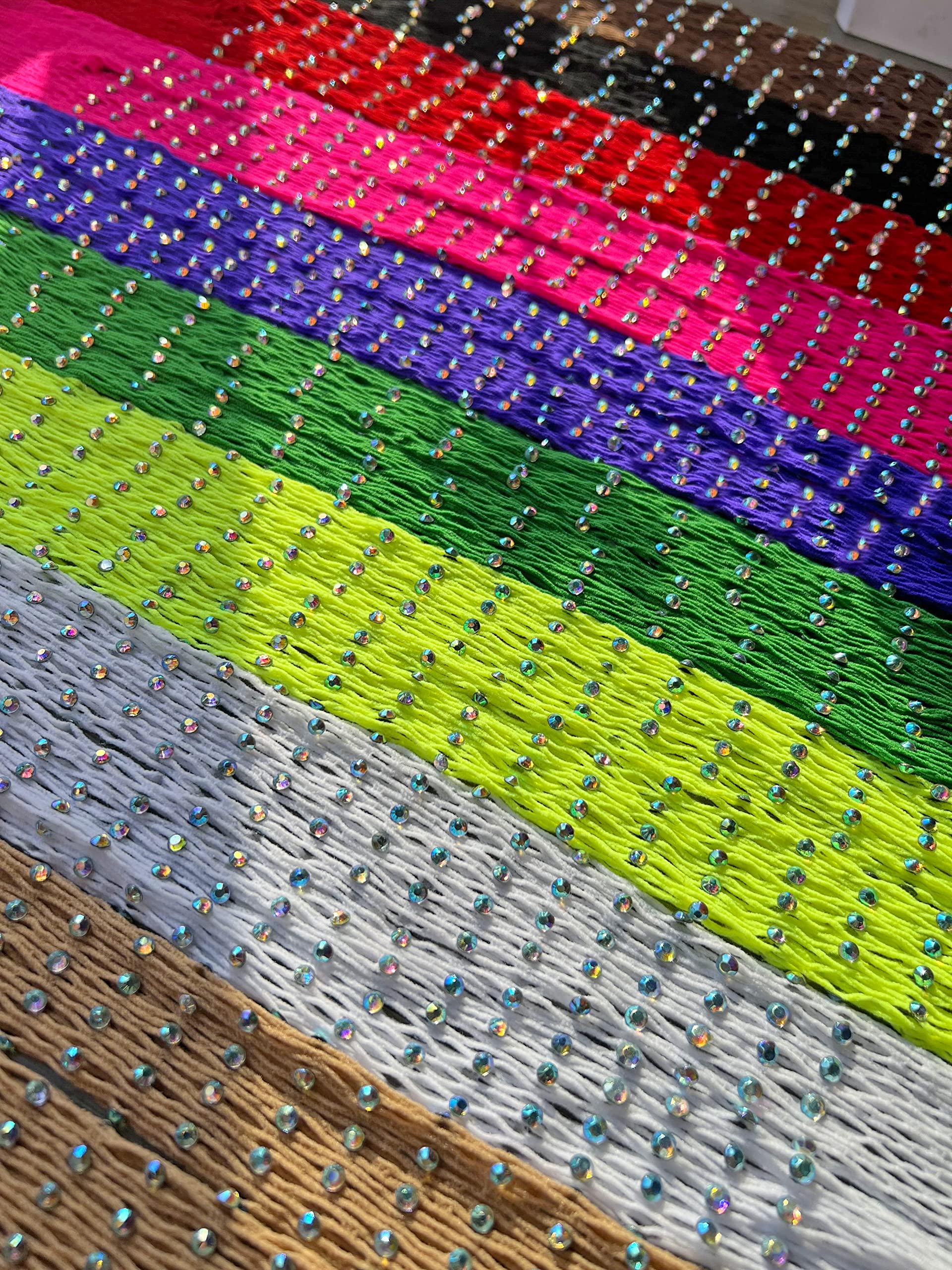 Rhinestones are all over the fishnets and are pretty securely glued on. The subtle pearly shine, absolutely Eye Catcher