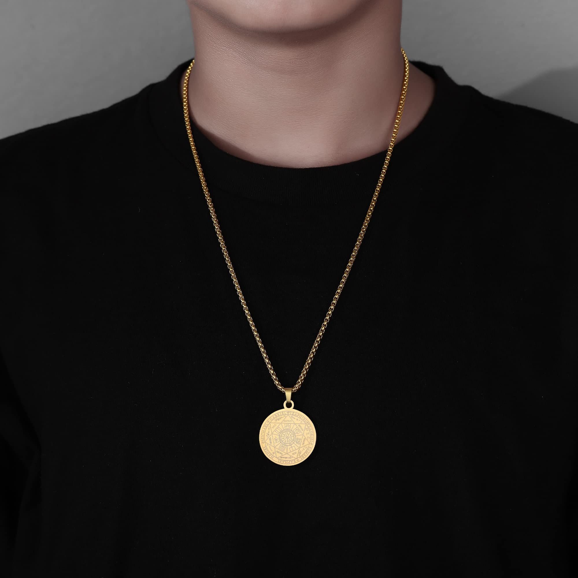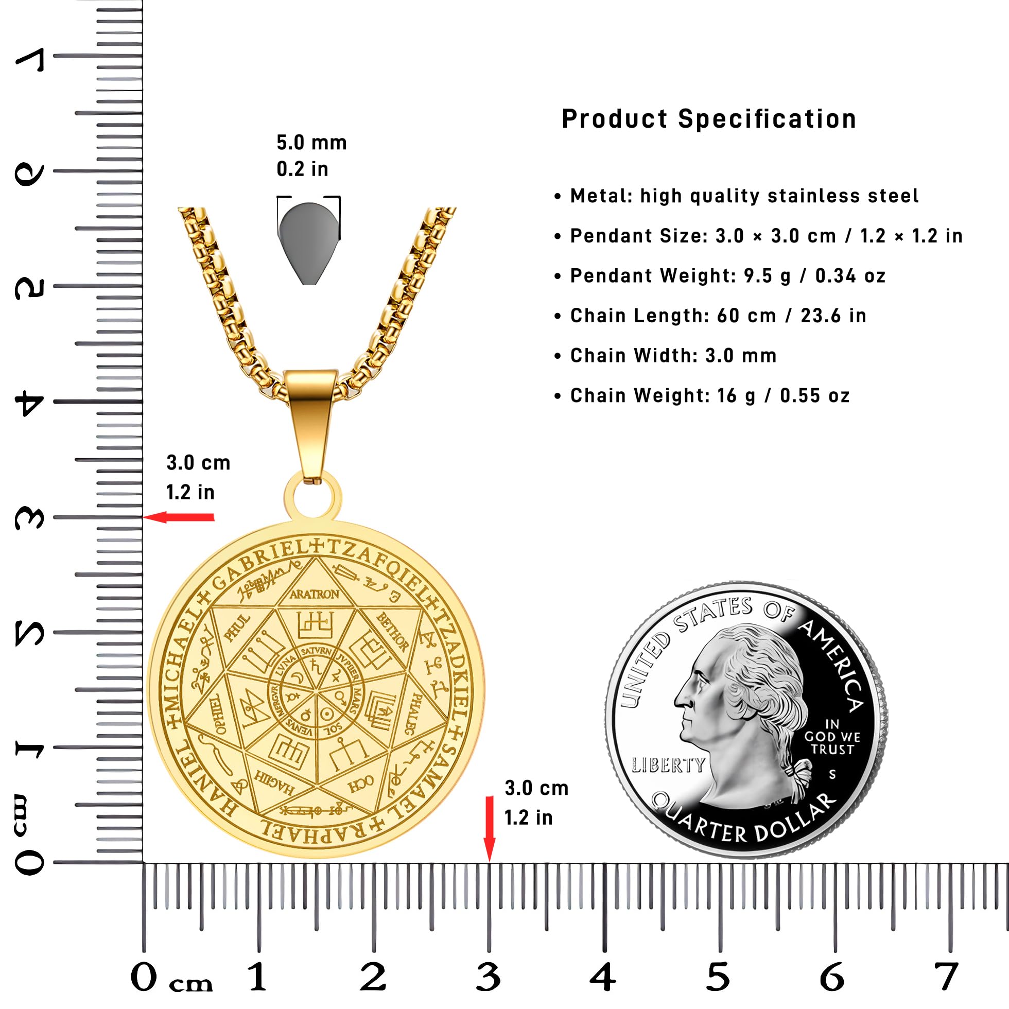 SPECIFICATIONS: High-Grade 316L Stainless Steel, 24 inches, 7 Archangels Coin Pendent 1.2 inch (d=30mm), Product Weight 25.5g / 0.90oz.