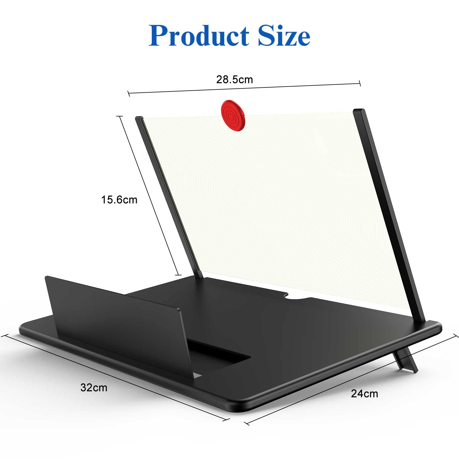 [Folding Design]: HD screen magnifier Storage type rotating folding design. If the height is not enough, height can be adjusted with the ring stand. Super slim when folded and also can be carried around in your bag. Suitable for indoor, camping, journey, leisure, anywhere and etc.