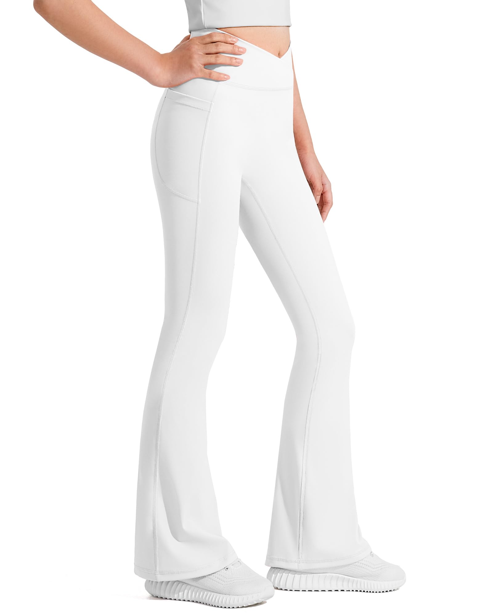 Girls Flare Leggings: The girls leggings features boot cut, bell bottom, and high-waisted design, these flare yoga pants provide a flattering fit for all body types and elongates teen girls legs. And no front seam design can avoid awkward lines without the adolescent troubles.