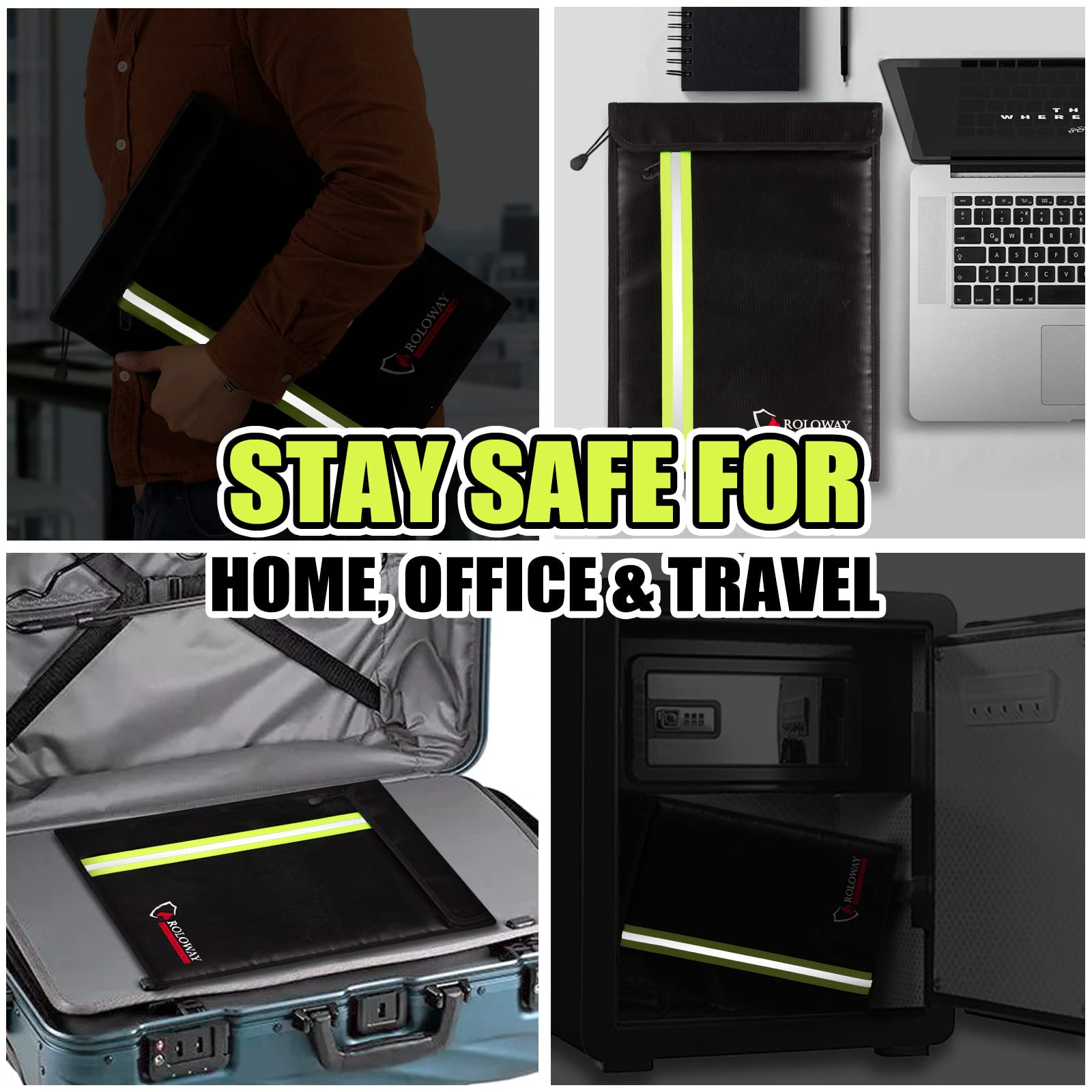 [UPGRADED - HANGING STRAP + PORTABLE + FOLDABLE - FOR EASY CARRY]: With a Hanging Strap, our fireproof money pouch is super easy to grab and carry for home, office and travel use. It can be also easily FOLDED to store in your fireproof box. With the PORTABLE design and the Dual-layer Fireproof Fiberglass, we hope you could keep ALL your valuables WELL PREPARED & PROTECTED anytime and anywhere. Please note we suggest to store our product in a fire safe box for more security