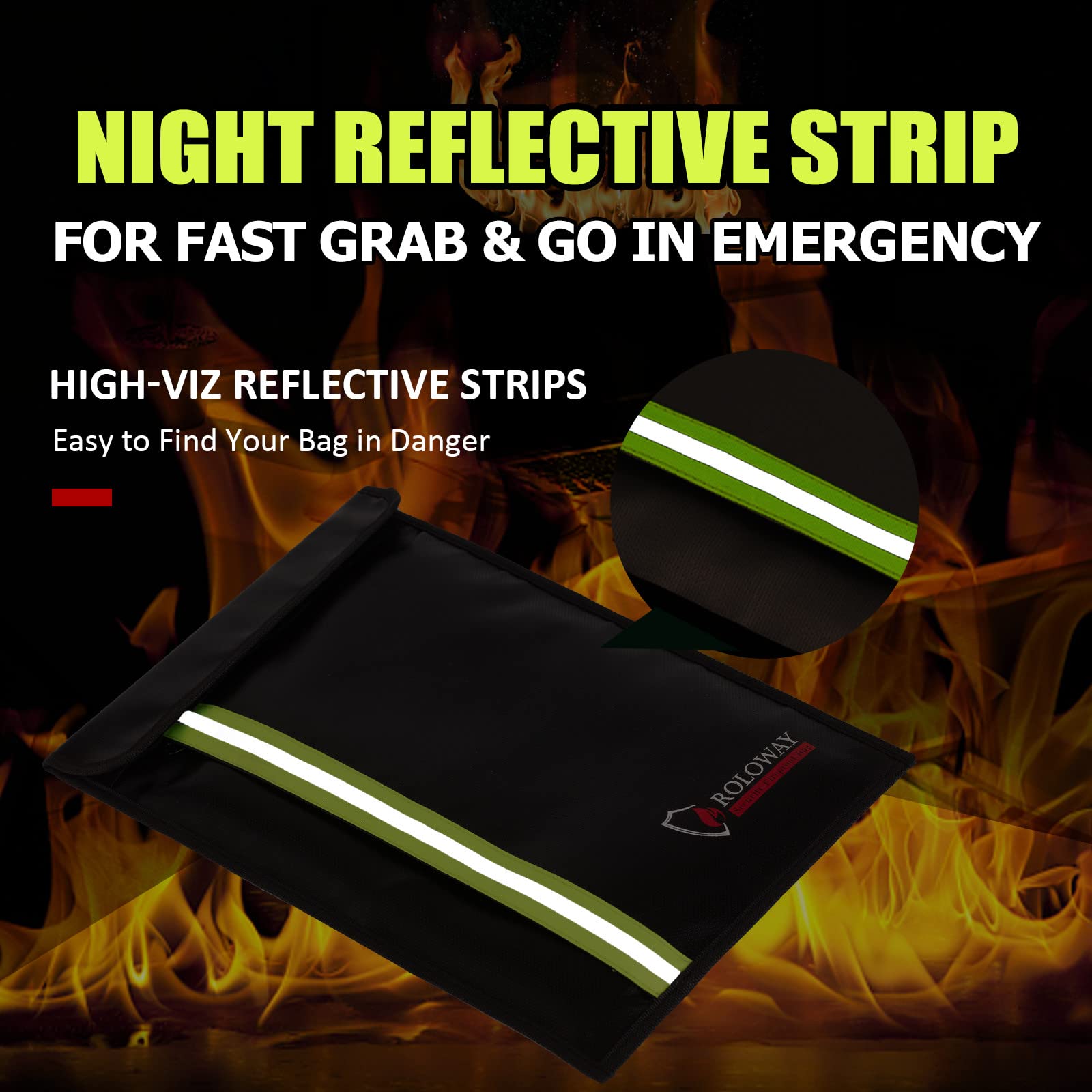 [UPGRADED - NIGHT REFLECTIVE STRIP - FOR QUICK GRAB & GO]: In emergency, every minute counts. With the specifically designed Night Reflective Strip, you could find our fireproof envelope for cash very soon even at night, which means you could find & take your most precious items in our fireproof bag much easier and quicker. Don't waste time trying to find your valuables in the dark. With the High Visibility Design, our fireproof money envelope is great for Quick Grab & Go in emergency