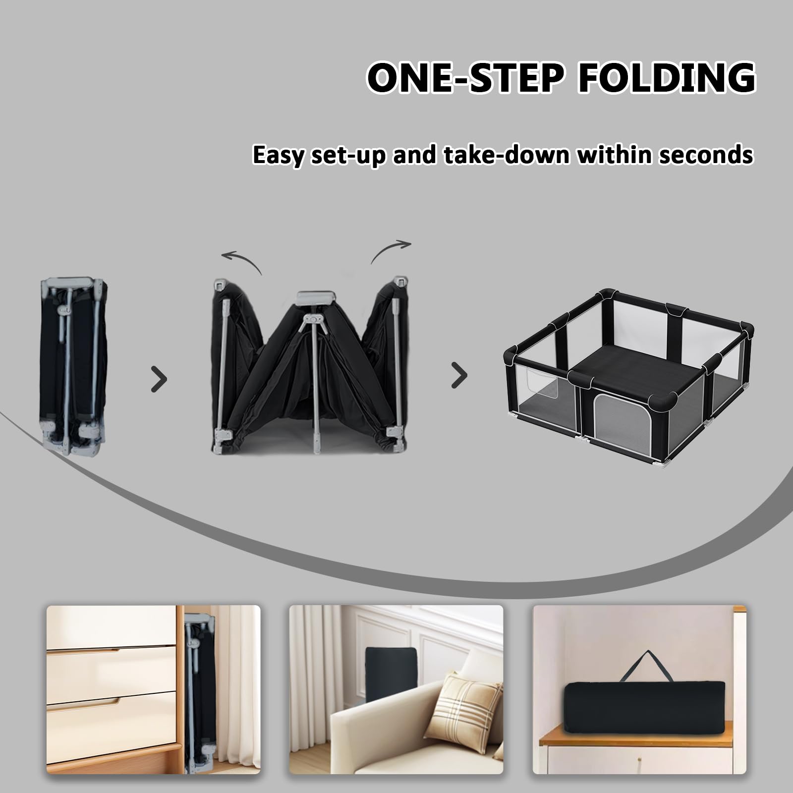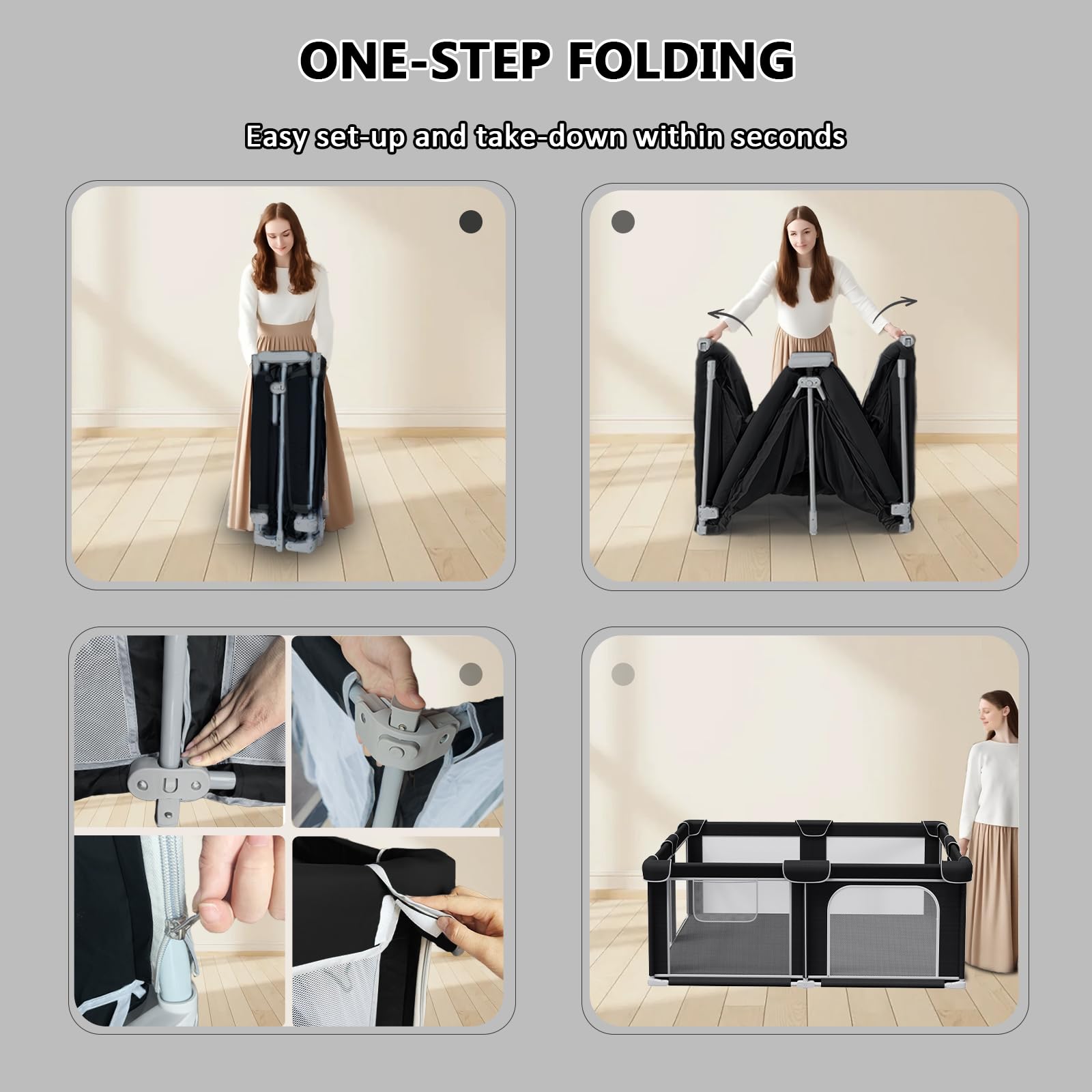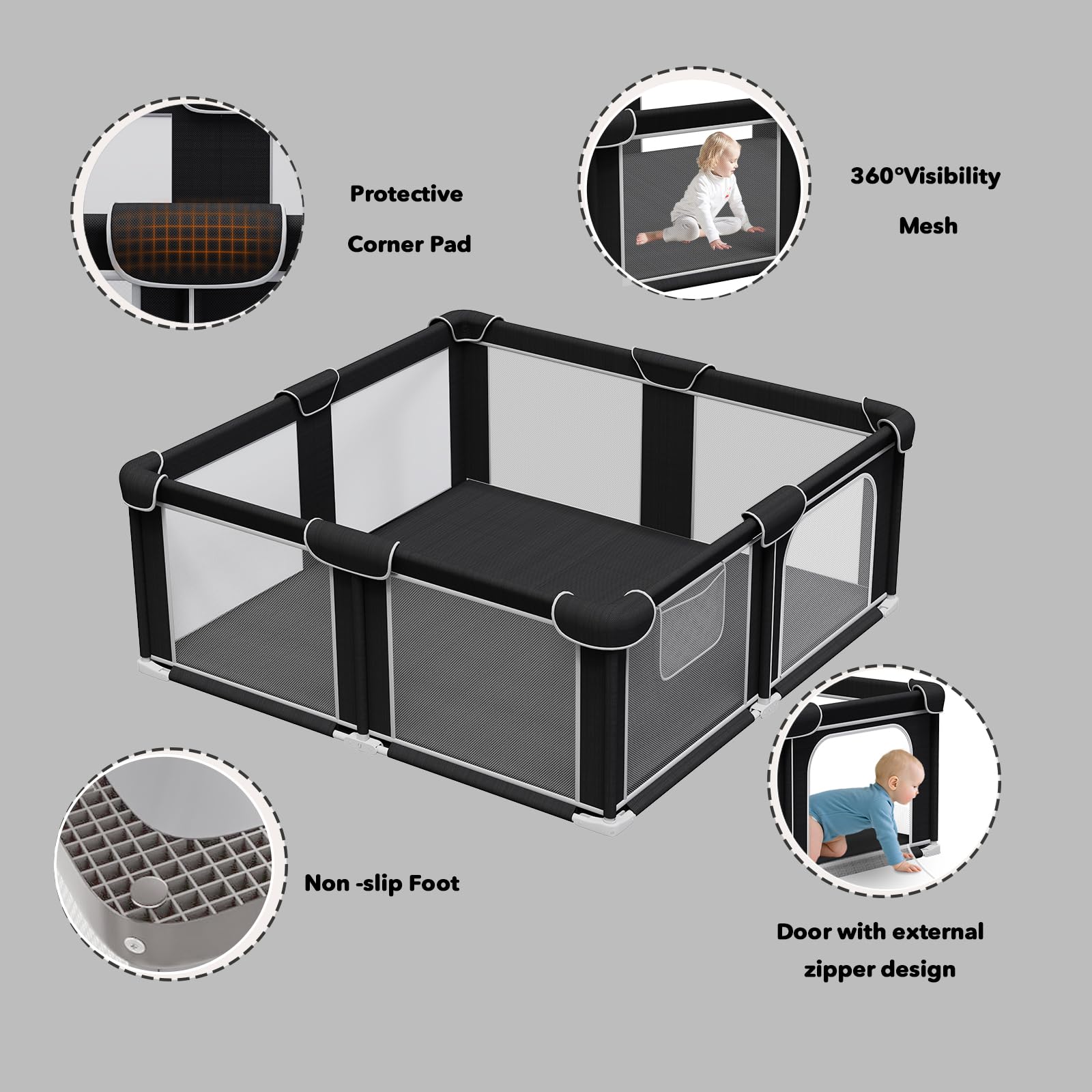 360° Breathable Visibility & Peace of Mind: Our playpen for babies and toddlers create a secure haven while staying connected. Four full-height, ultra-breathable mesh walls ensure excellent airflow and provide you with a clear, panoramic view of your child from any angle. Watch them play safely and comfortably.