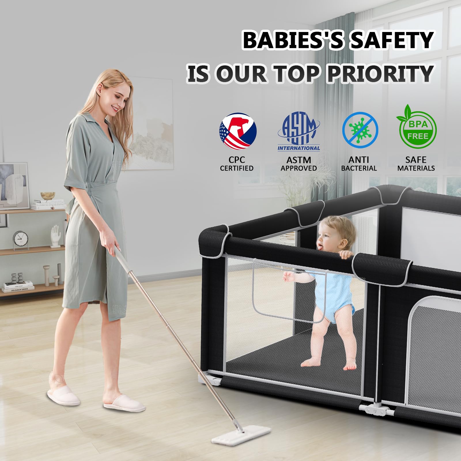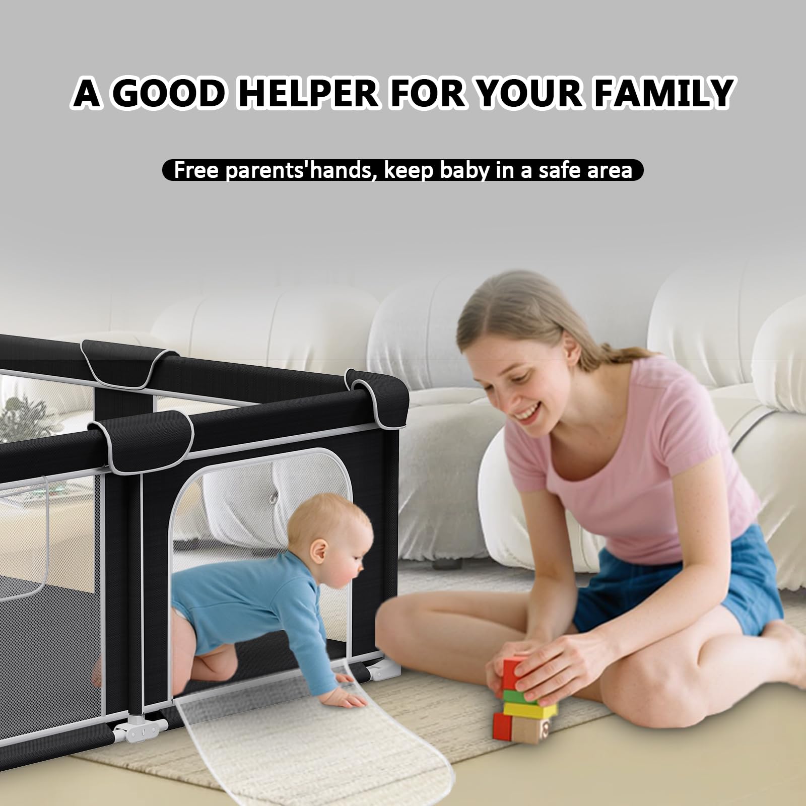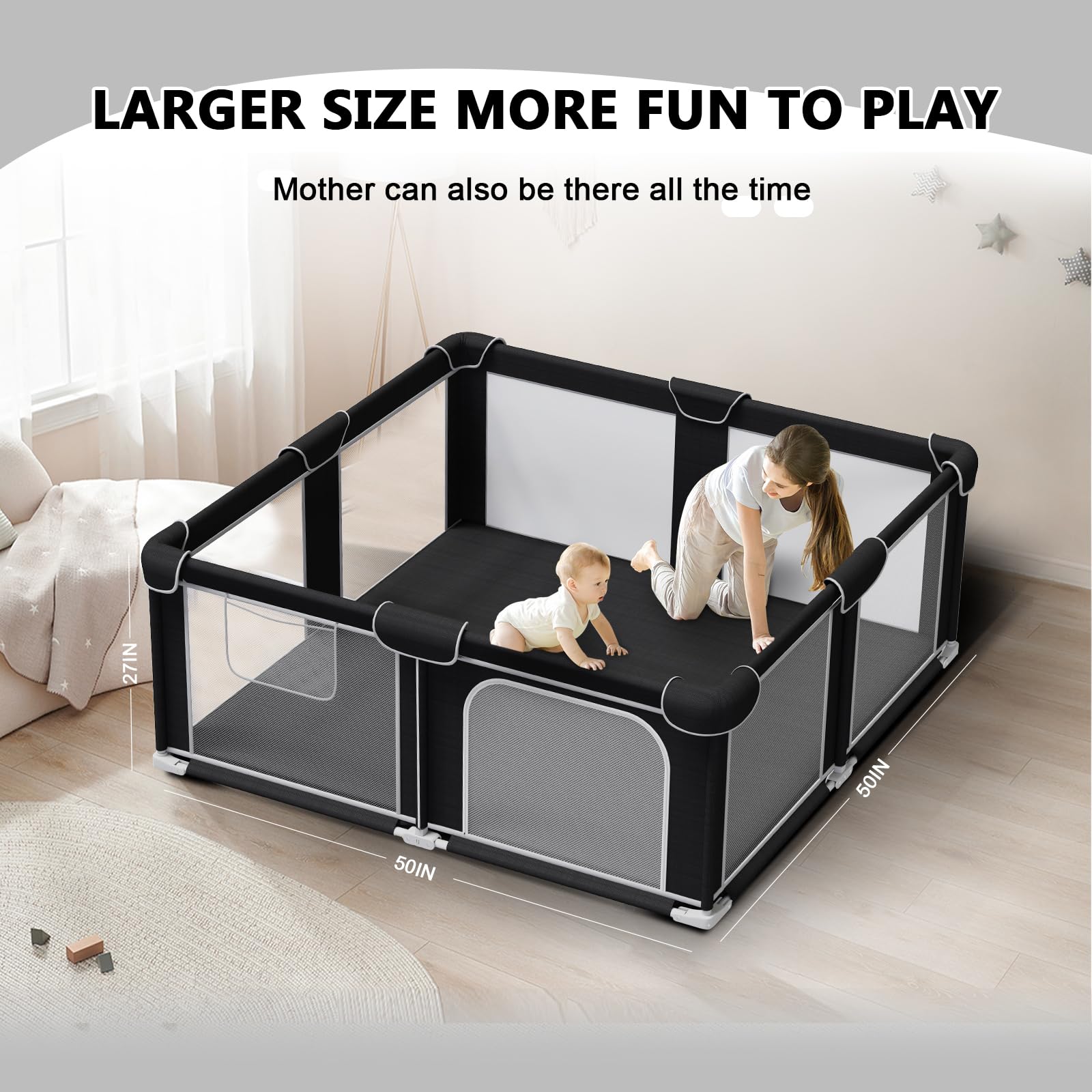 Spacious 50"x50" Play Zone: Give your baby room to roam, crawl, and discover! Large Baby Playpen playpen provides ample space for free movement and exploration. Its optimal height safely supports toddlers as they learn to pull up, stand, and take their first steps.