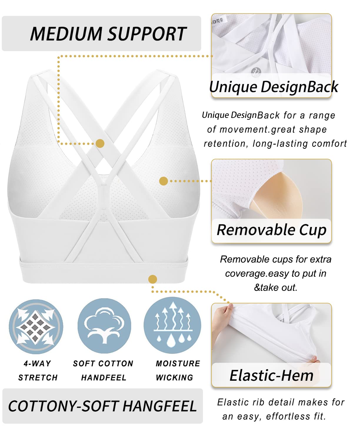 CRISS-CROSS BACK FULL COVERAGE DESIGN:Sexy back bringing more attention to the crisscross double strap back feature.Elastic Double Strap Bra features a sultry full coverage and double layer fabric for enough added support.Stretch Fit Sports Yoga Gym Bra Push up & Padded with removable pads for convenient adjustment, with a cotton-like meterial, soft and comfortable to wear.