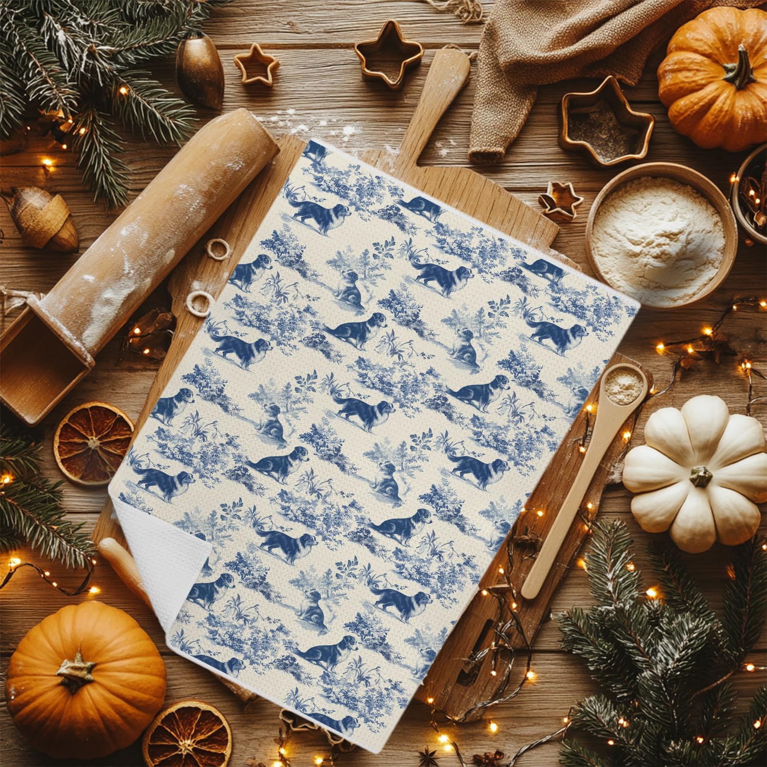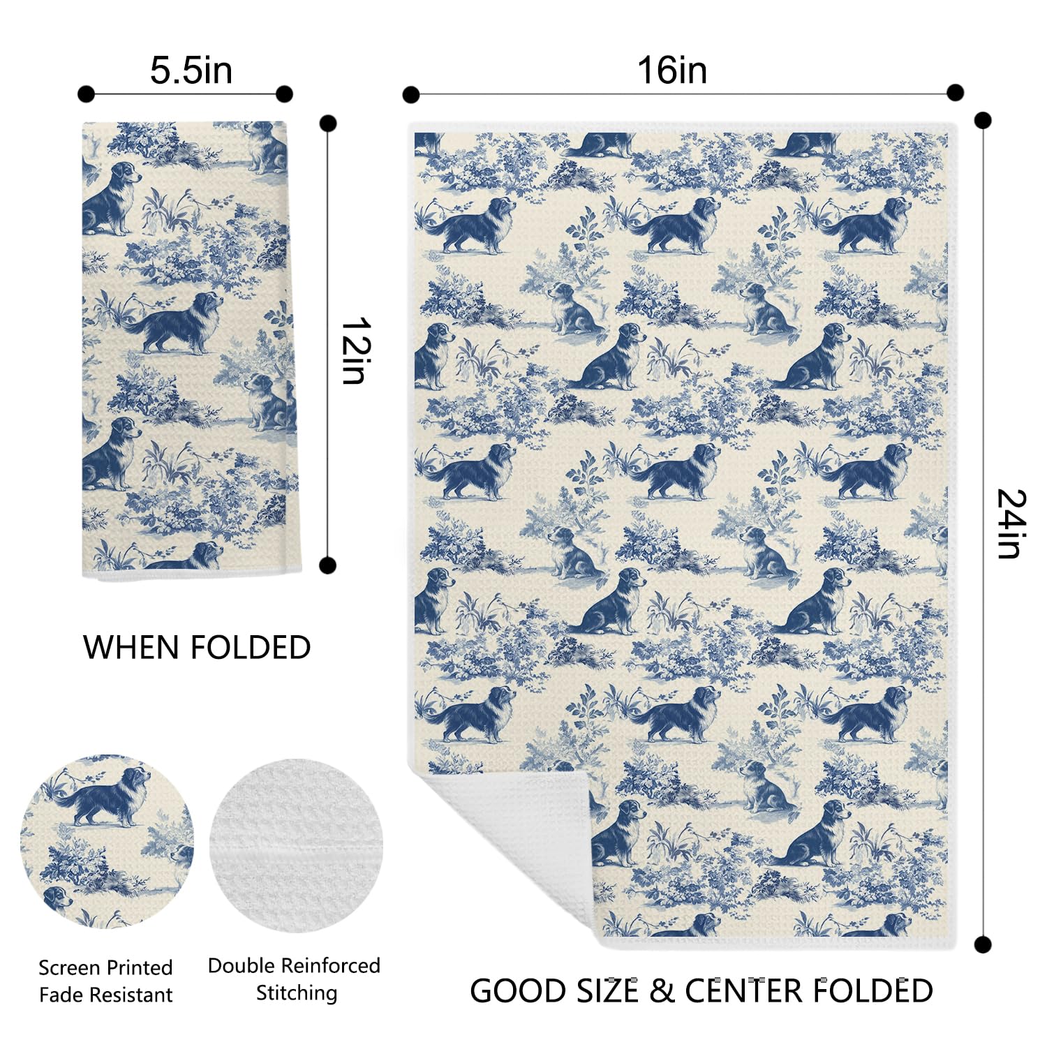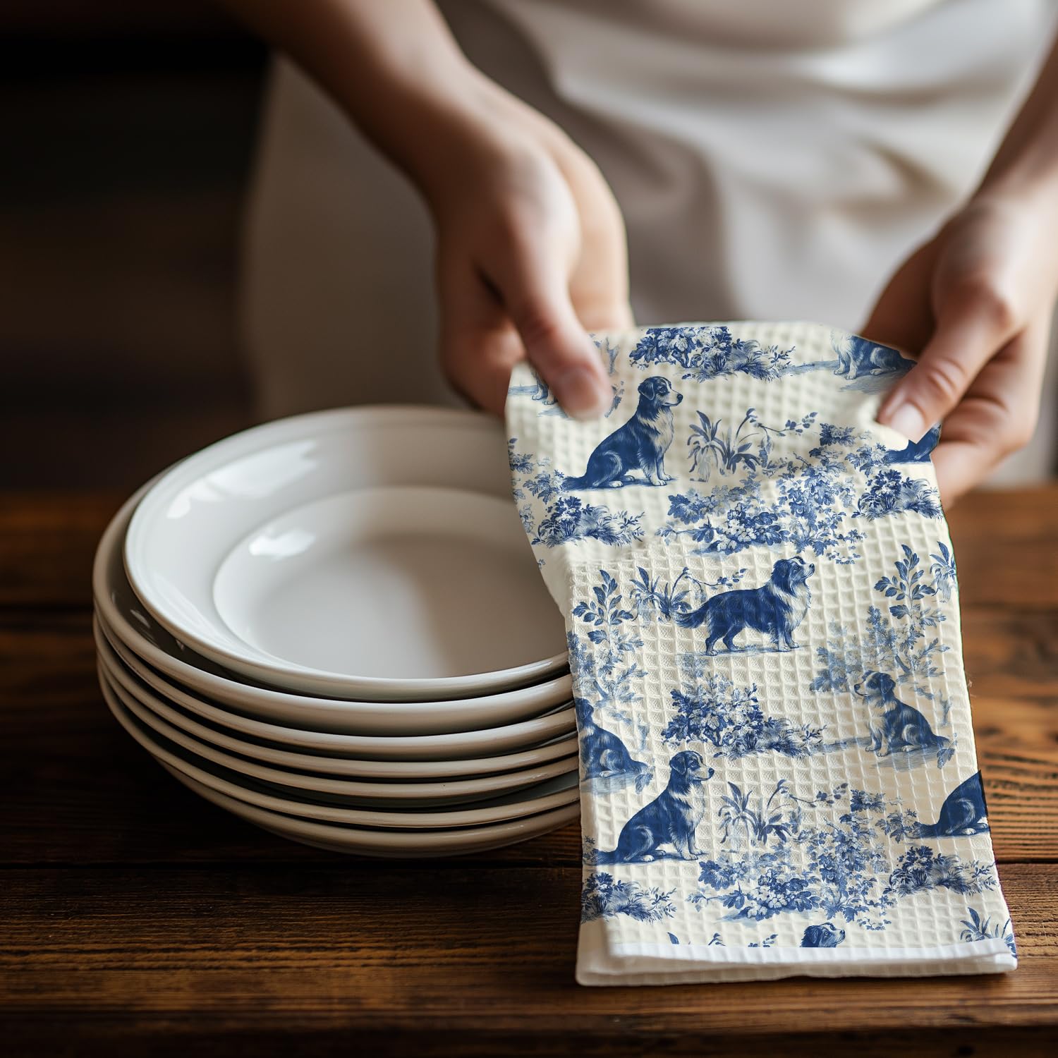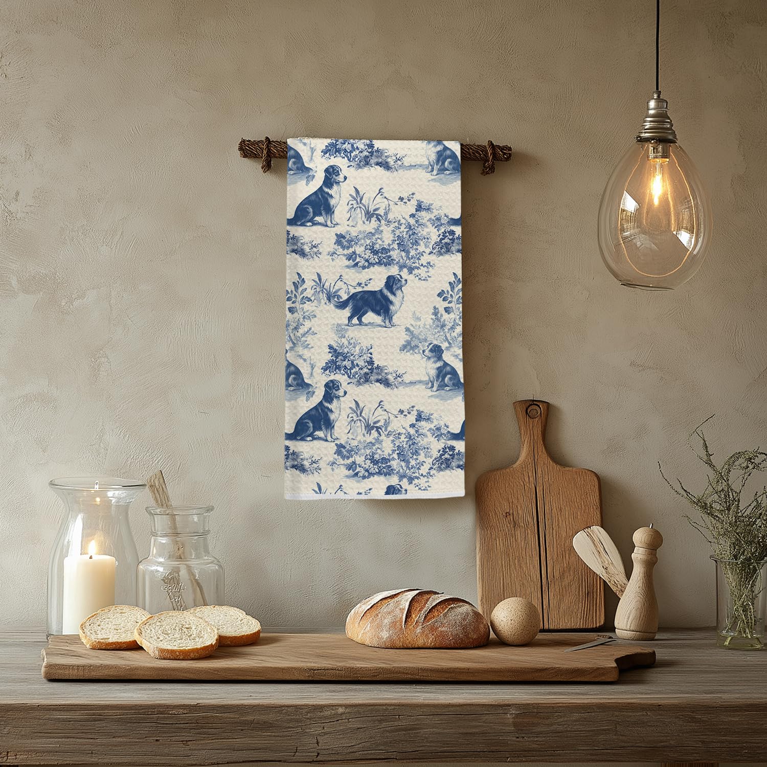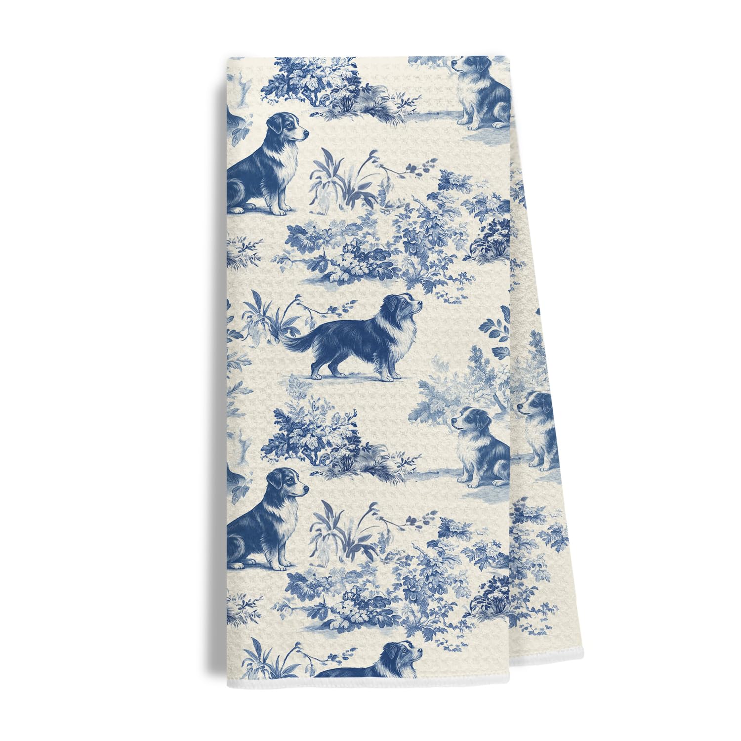 Celebrate your love for Shelties or Collies with this Chinoiserie-Inspired Dog Kitchen Towel. The towel features an elegant pattern of hand-drawn herding dogs among classic blue toile florals, bringing a nostalgic yet refined vibe to your home. this 16x24 inch towel is both functional and beautiful. Whether used in the kitchen, displayed in a laundry room, or gifted to a dog-loving friend, it’s sure to charm with every use. Bring a touch of vintage pastoral elegance into your space—one towel at a time.