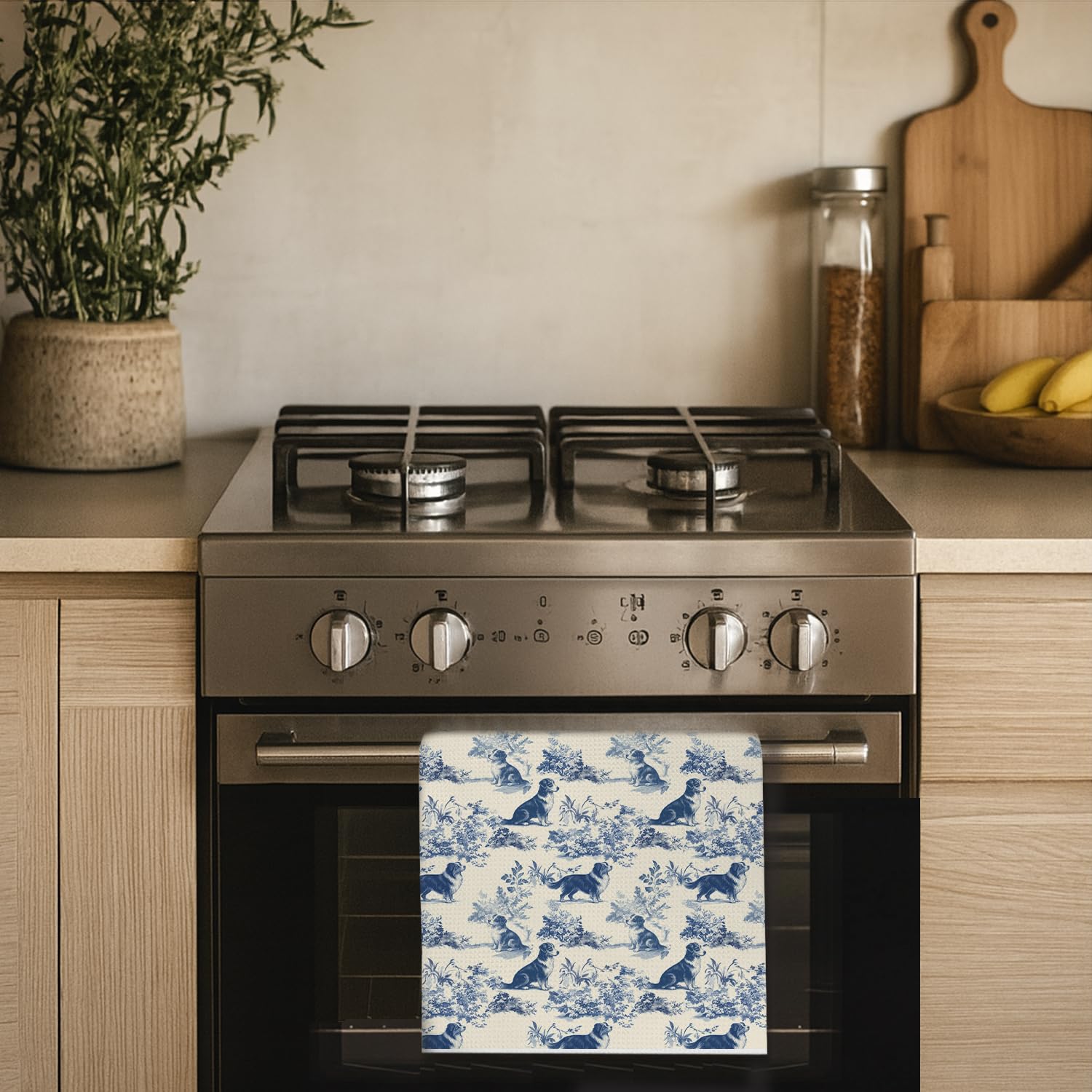 Toile-Inspired Farmhouse Aesthetic Combines chinoiserie botanical motifs with loyal herding dogs—ideal for rustic, cottagecore, and vintage-style kitchens or bathrooms.