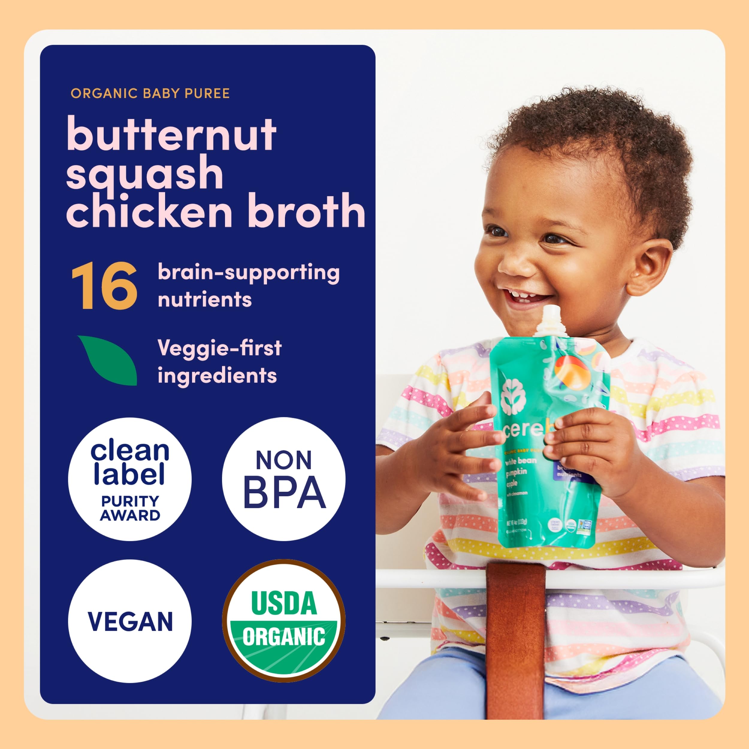 16 BRAIN-SUPPORTING NUTRIENTS – Only baby food with 16 nutrients for development, including potassium, iron & vitamin A