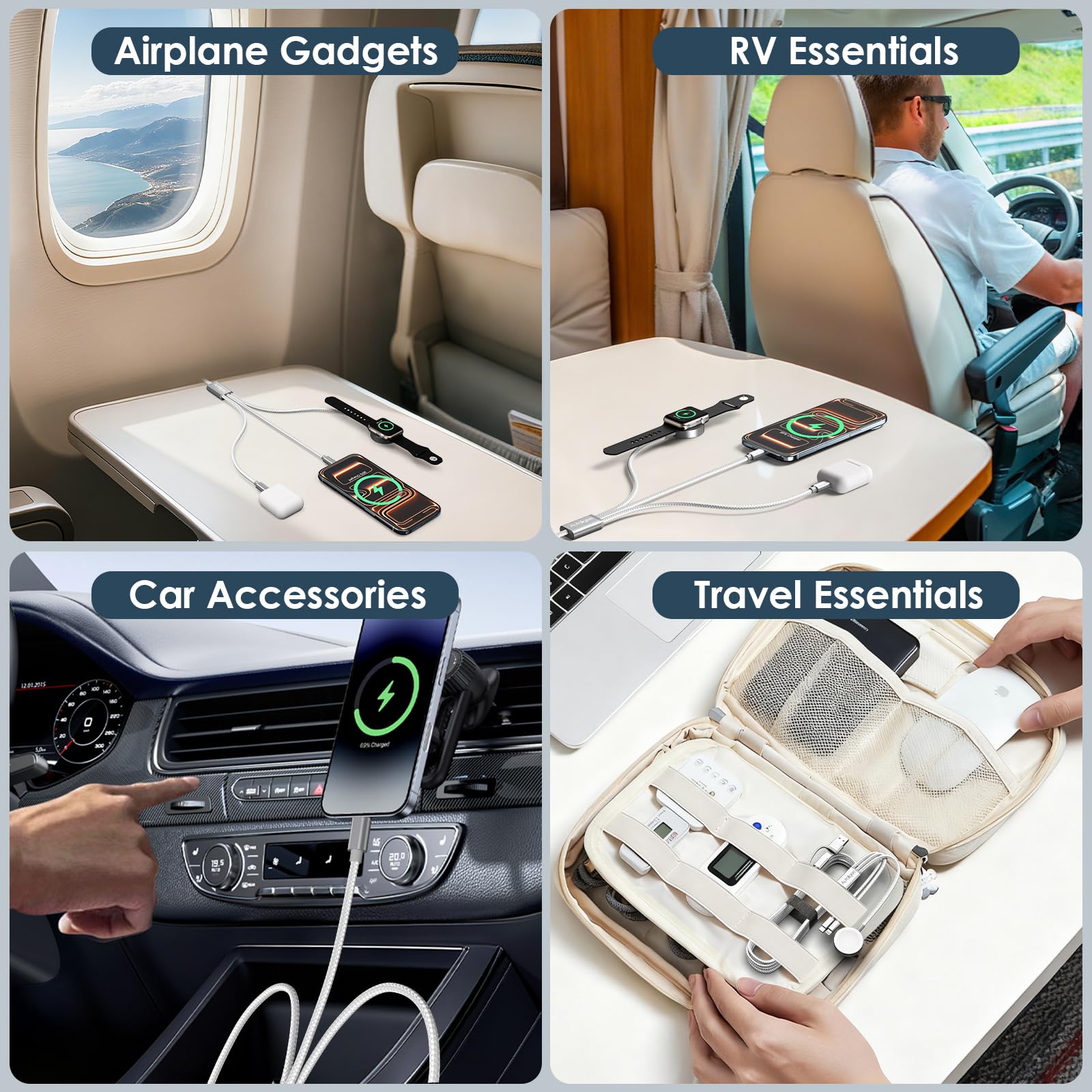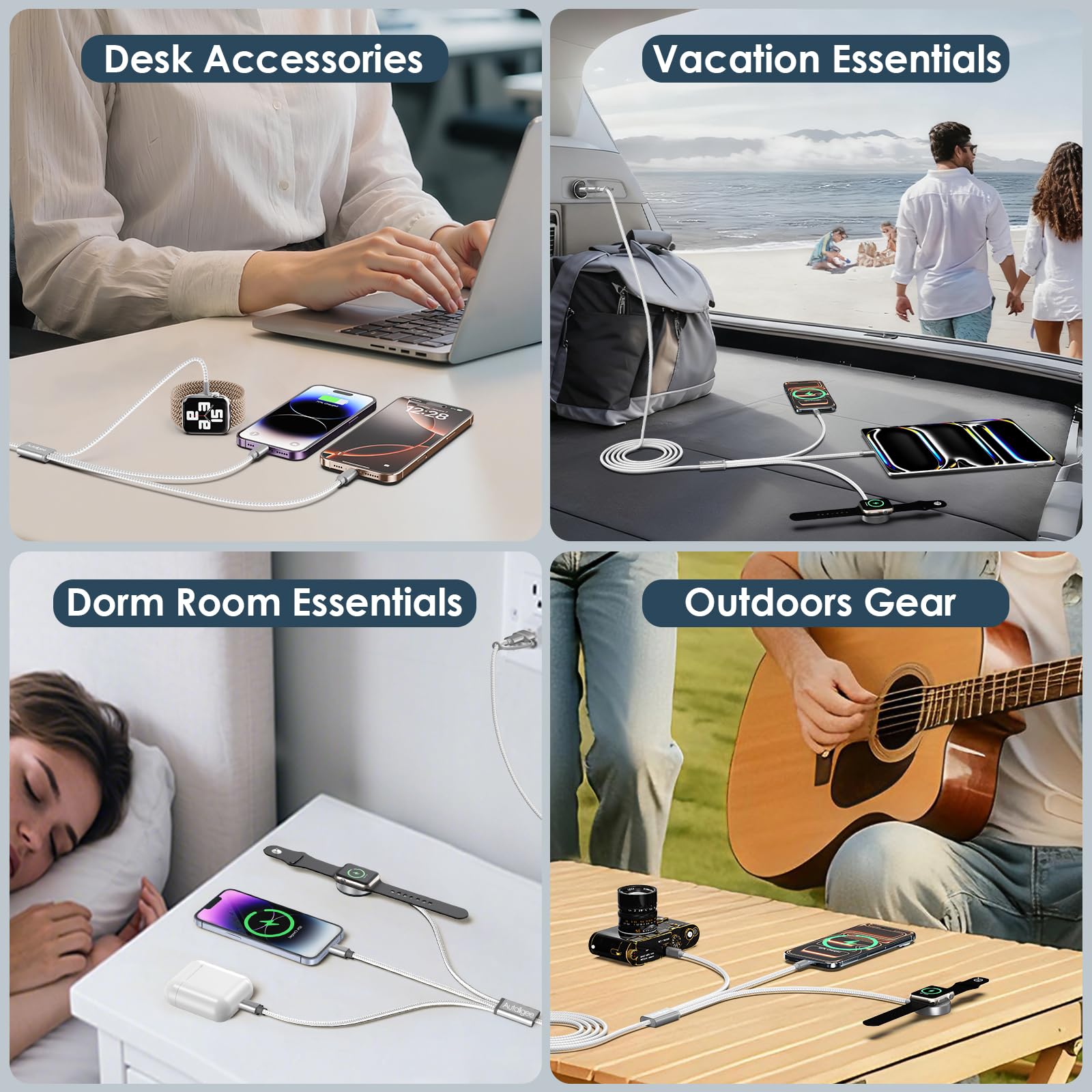 【Thoughtful Gifts & Travel Gadget 】This is a great gift for birthdays, Thanksgiving and Christmas.An essential accessory for AppL-e enthusiasts.It is the perfect present for anyone who owns both an App-le Watch and an Phone, providing convenience and style in one package.Charging the whole family in the car requires such a cable.