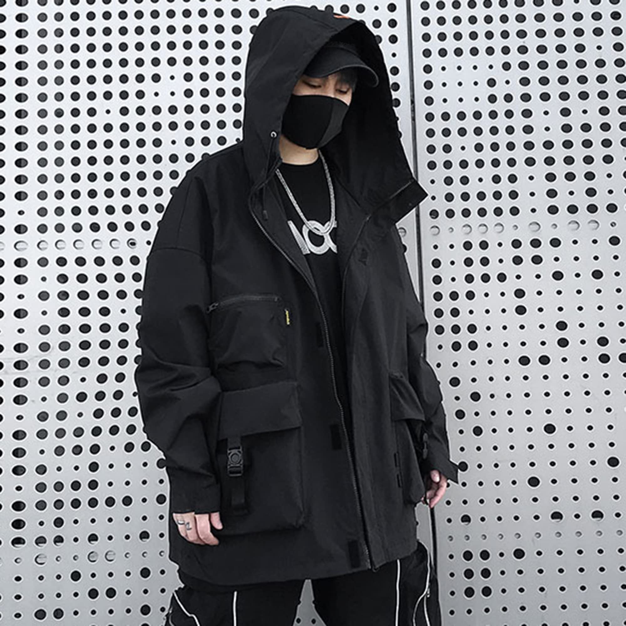 XYXIONGMAO Casual Techwear Zipper Tactical Gothic Clothes Jacket Windbreaker Streetwear Jackets Hooded for Men