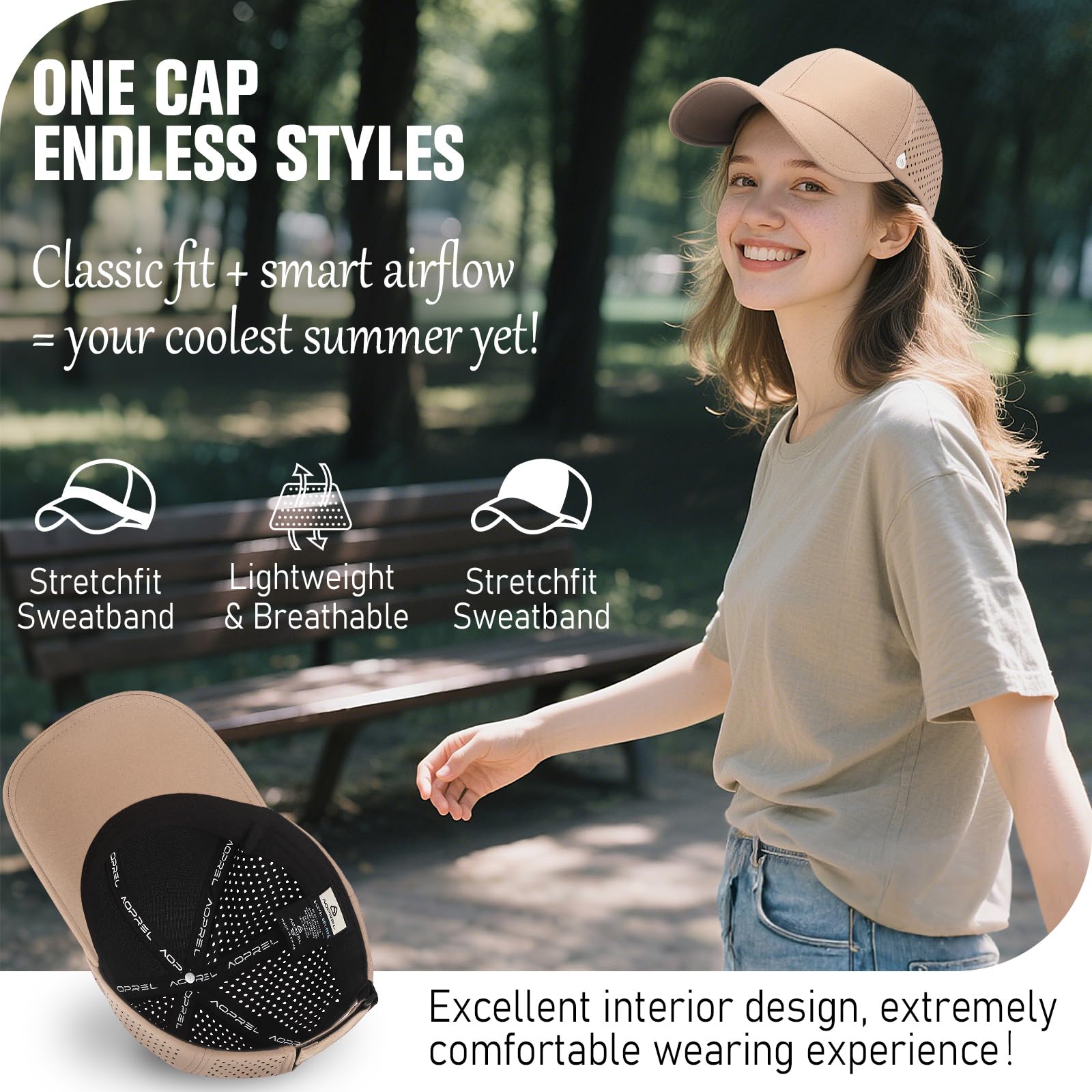【The Ultimate All-Weather Caps】Rain or sweat, this workout hat handles it all! The front features a waterproof coating to repel rain, while laser-cut raindrop vents on the sides and back maintain optimal airflow, so you stay cool (no more "sweat swamp" under your hat!). It's the perfect combo: dry where it counts, breezy where you need it. no more choosing between protection and comfort!