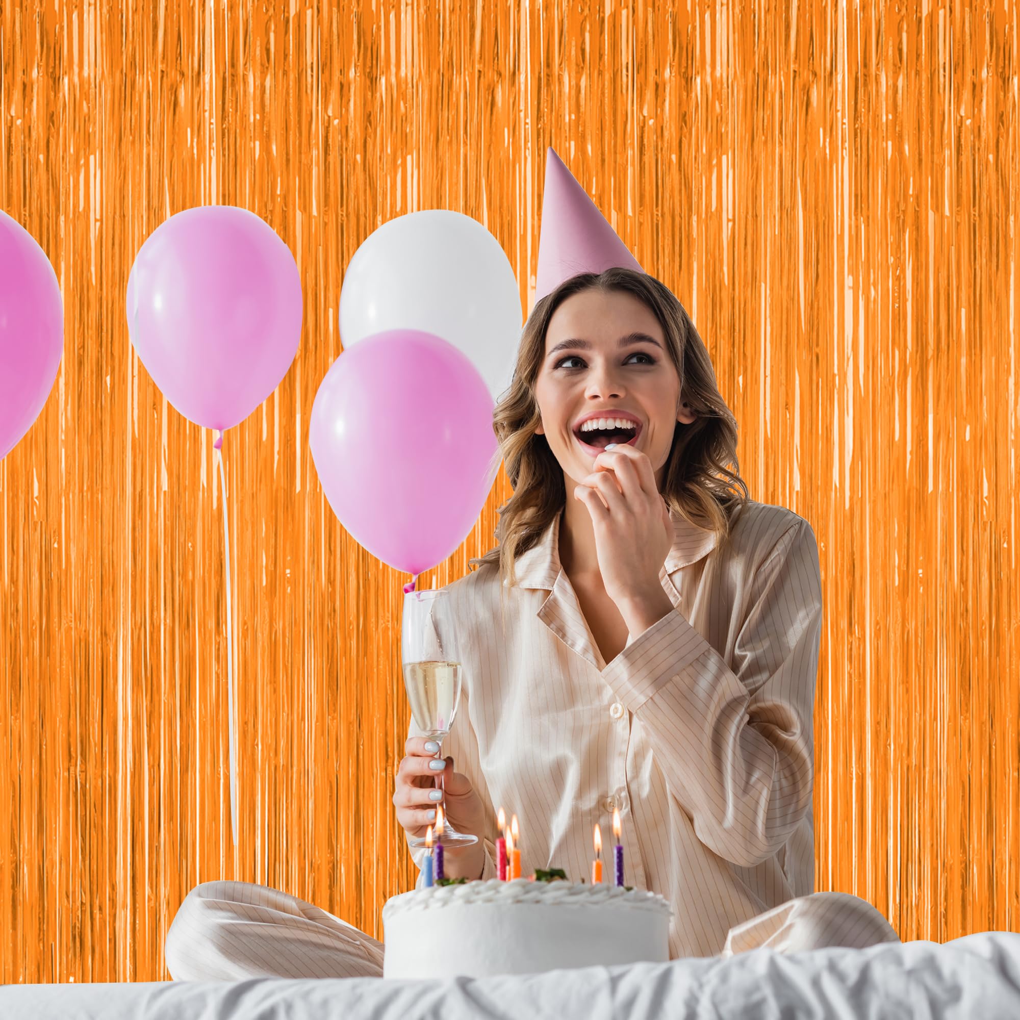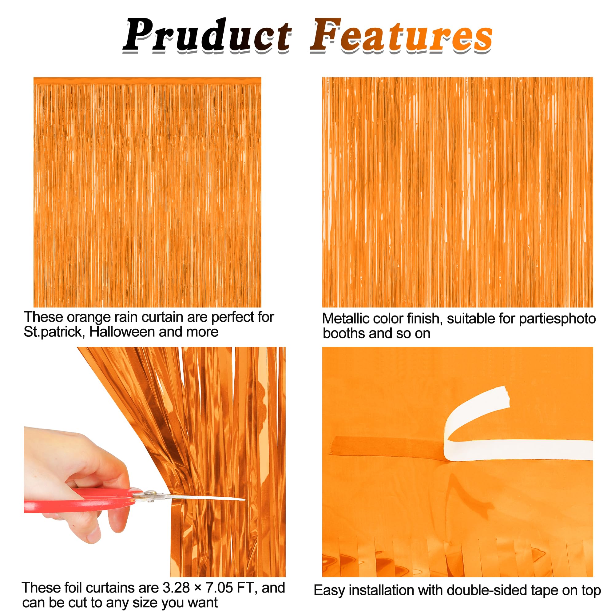 Design: These foil curtains feature a orange color along with a metallic finish, creating a mysterious and slightly scary atmosphere.
