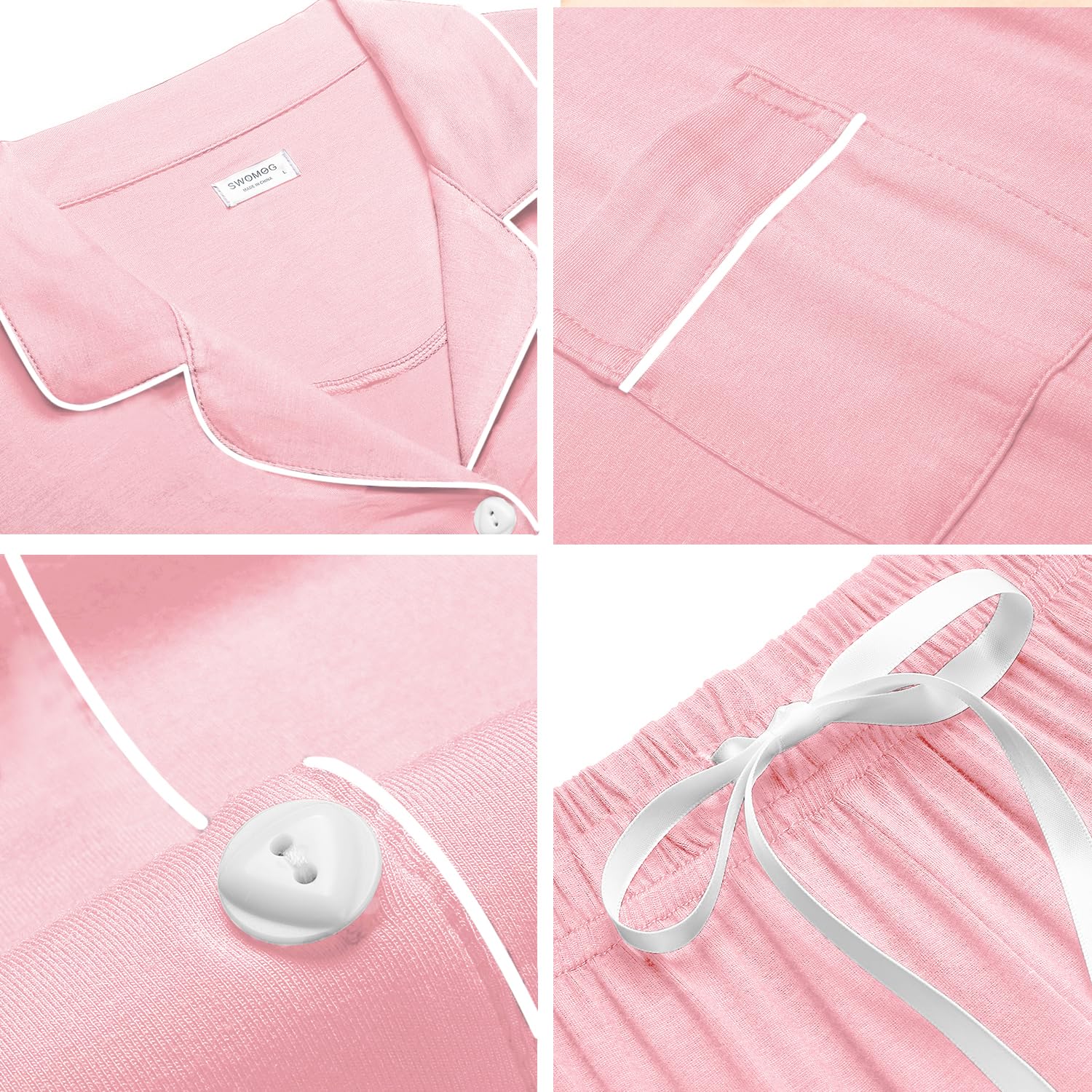 ❤ SOFT TOUCH:Soft pajamas set is made of Modal (95% Rayon and 5% Spandex) fabric, which is ultra soft, lightweight and stretchy. Womens Pajama Sets Shorts brings you super comfortable feelings. This classic button down 2 piece nightwear is perfect for lounging around the house.