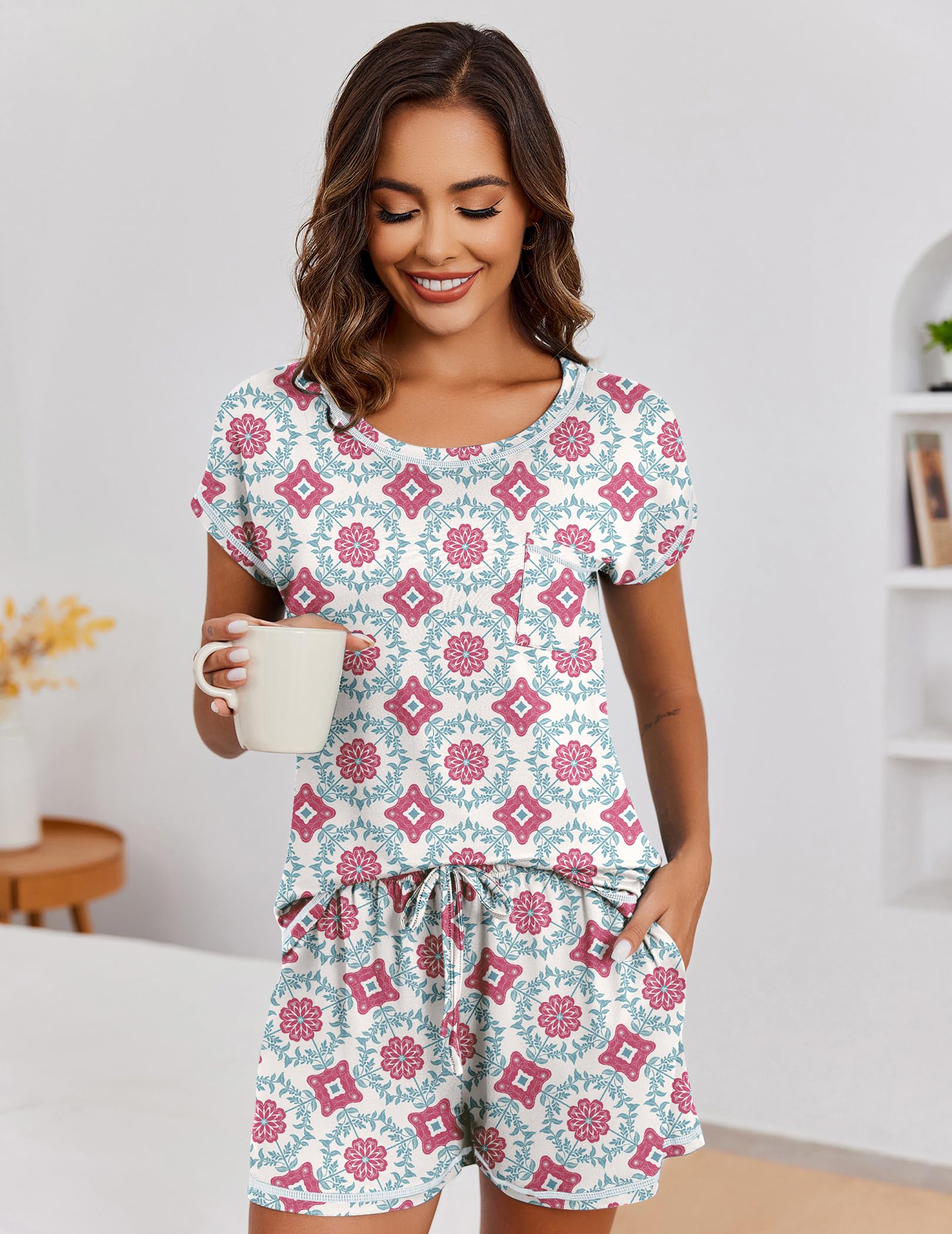 Occasion: This pajamas for women set can be used as home loungewear or pajamas to enjoy cozy time. The pajama shorts women is super soft and skin-friendly, and practical travel companions for packing light and prioritizing comfort. Great pjs for women
