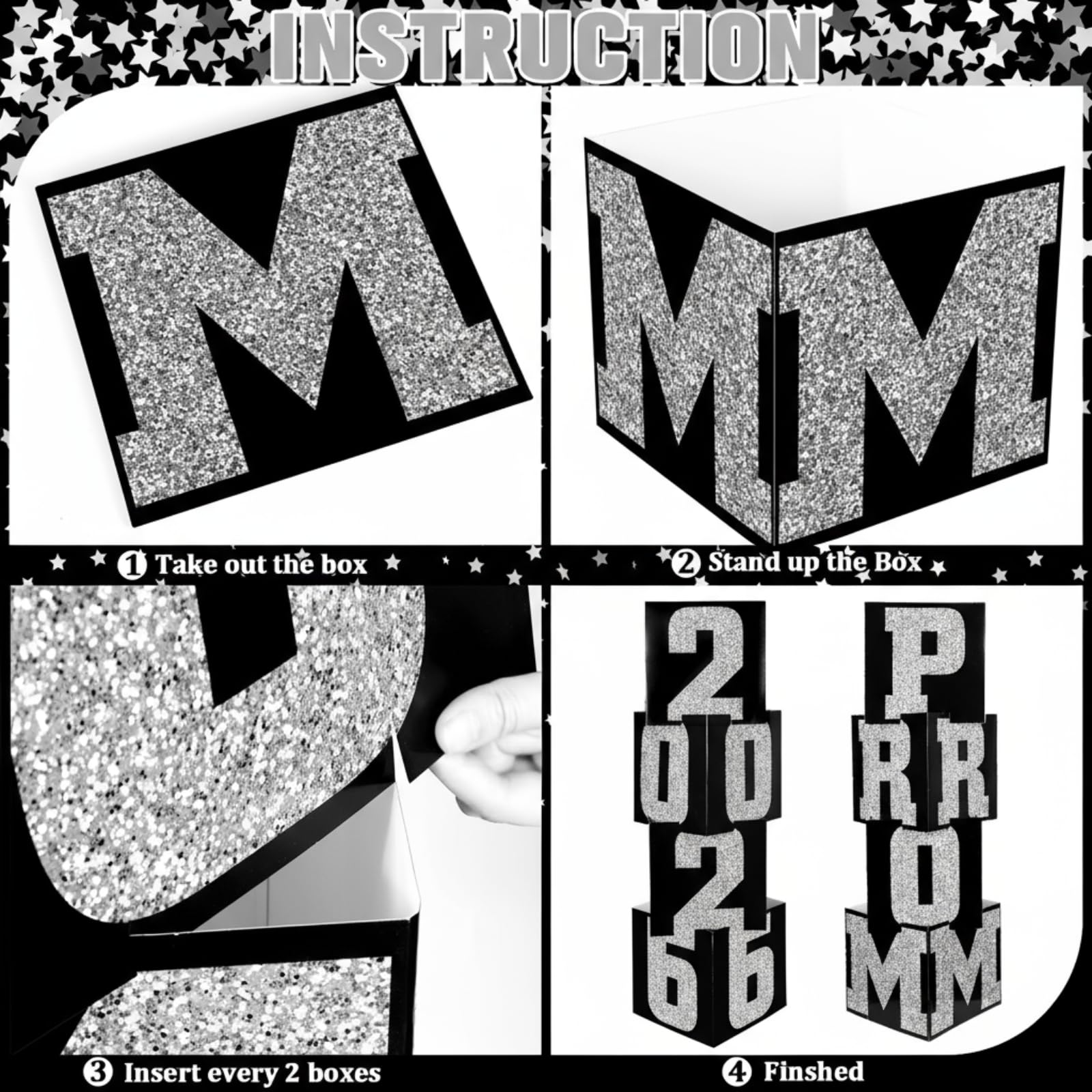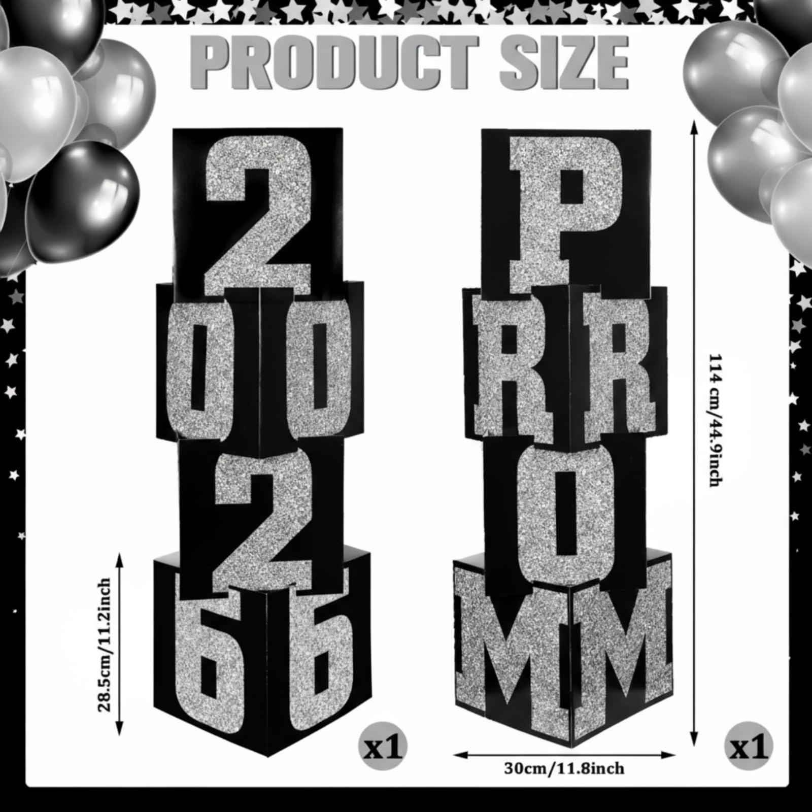 Graduation Party Decorations 2025: you will receive 8 pieces of prom boxes with the letters of [PROM], [2025], which can create 2 columns; The prom boxes will be the nice decoration of your prom, which will make your prom looks delicate and stylish