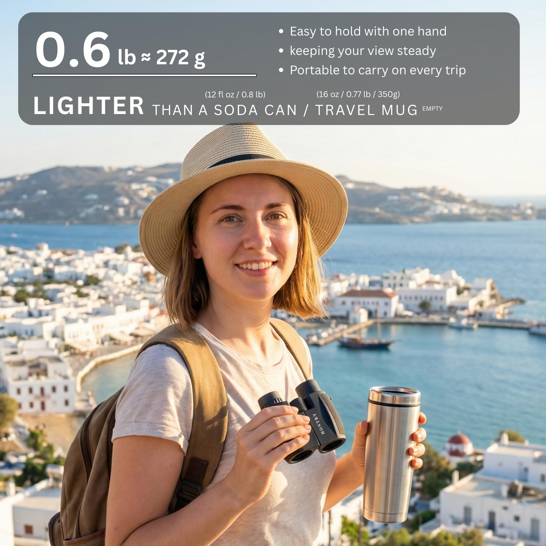 Compact design: About the size of your palm and weighing only 0.6 pounds - makes it easy to carry around wherever you go. With these features, your binoculars become a reliable companion for everyday adventures rather than a tool reserved only for special occasions.