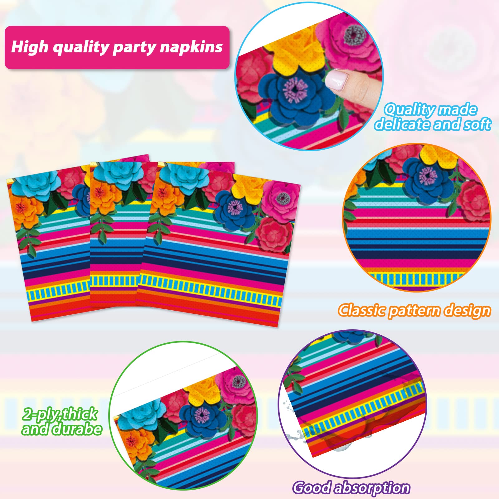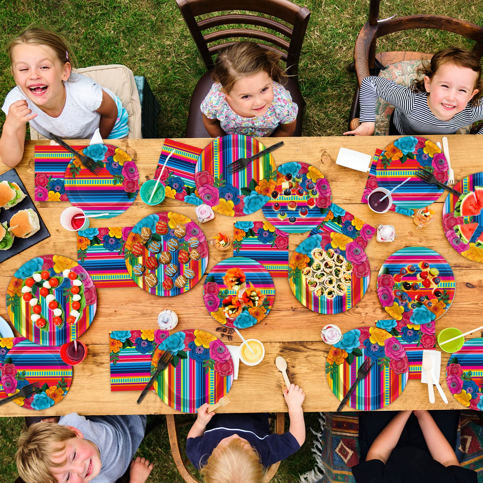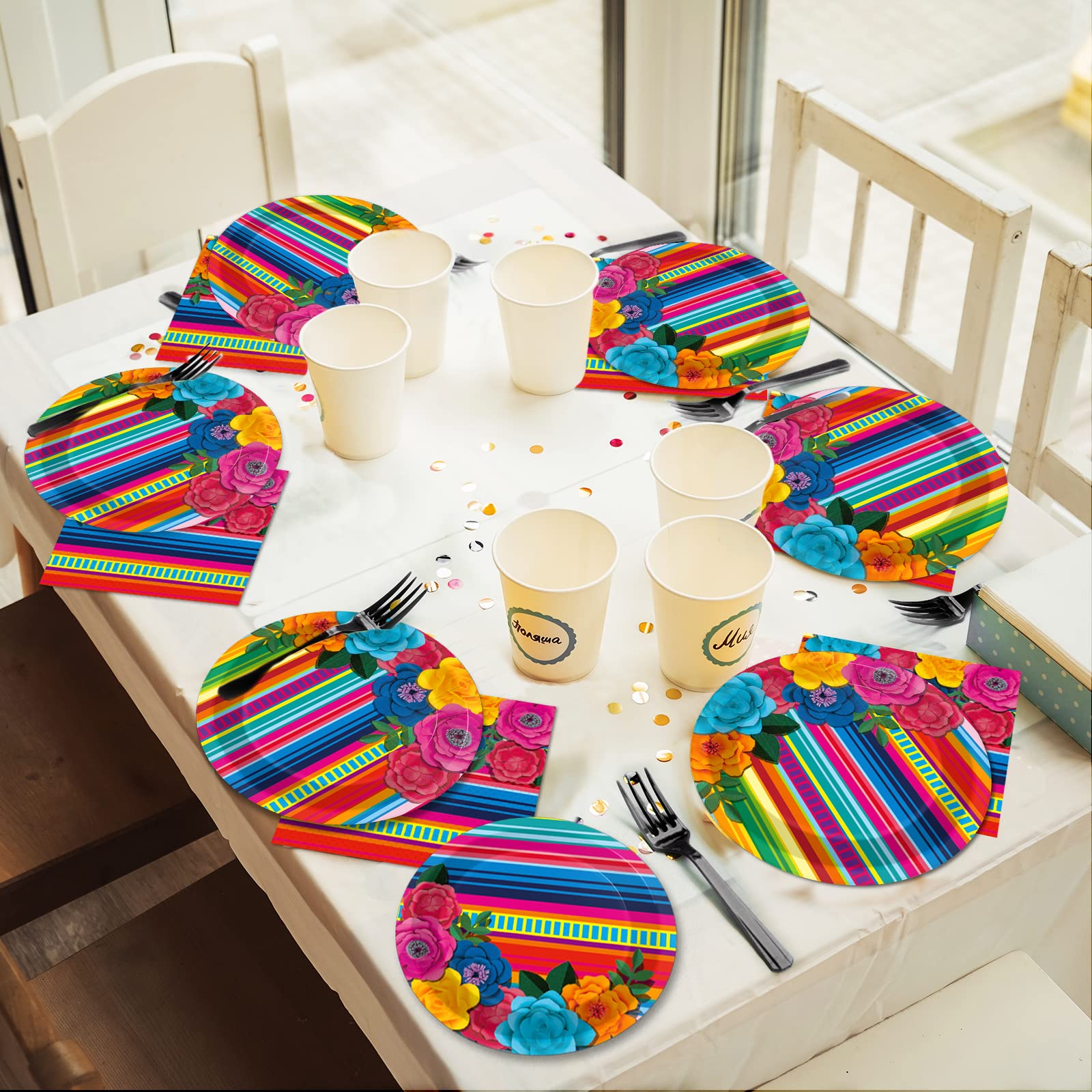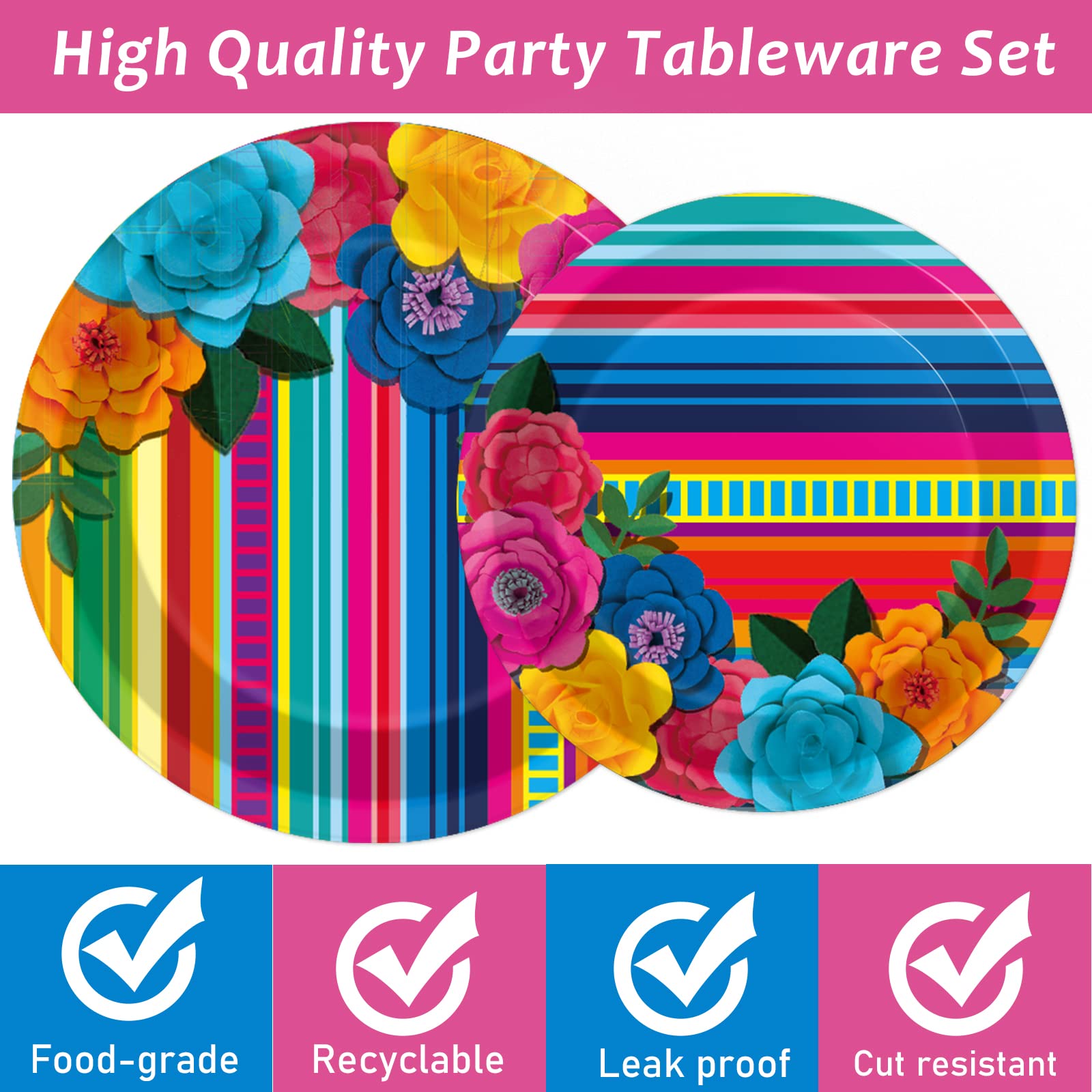 Beautiful Design: This mexican birthday party decorations is based on the theme of pictures of floral stripes.Fiesta party plates colors are bright, and the colors of the flowers and stripes match harmoniously, which can make your party beautiful.