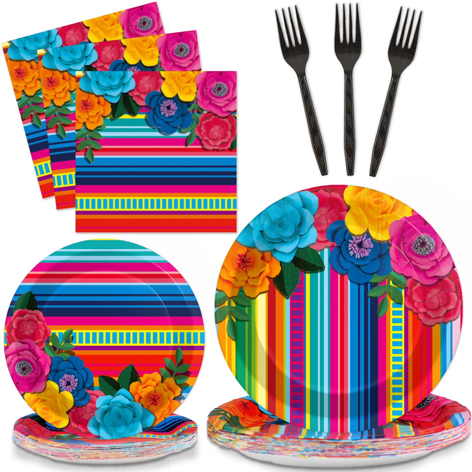 Convenient: The floral fiesta party decorations mexican party decorations is very convenient and easy to clean. These mexican paper plates, napkins and forks are disposable so you can clean up easily and save time. Perfect for the Fifth of May party.