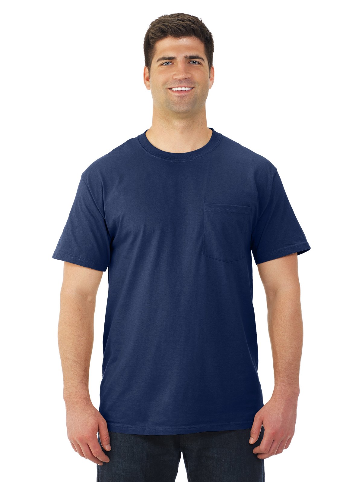 Description Our men's pocket t-shirts are a casual wardrobe staple that you are going to love to live in. Featuring a tag free collar, super soft cotton and reinforced pocket, the Fruit of the Loom Men's Pocket T-Shirts are designed for comfort and made to last. Live your life more comfortably with Fruit of the Loom Men's Pocket T-Shirt. Each shirt wicks away moisture so you can stay cool and dry.
