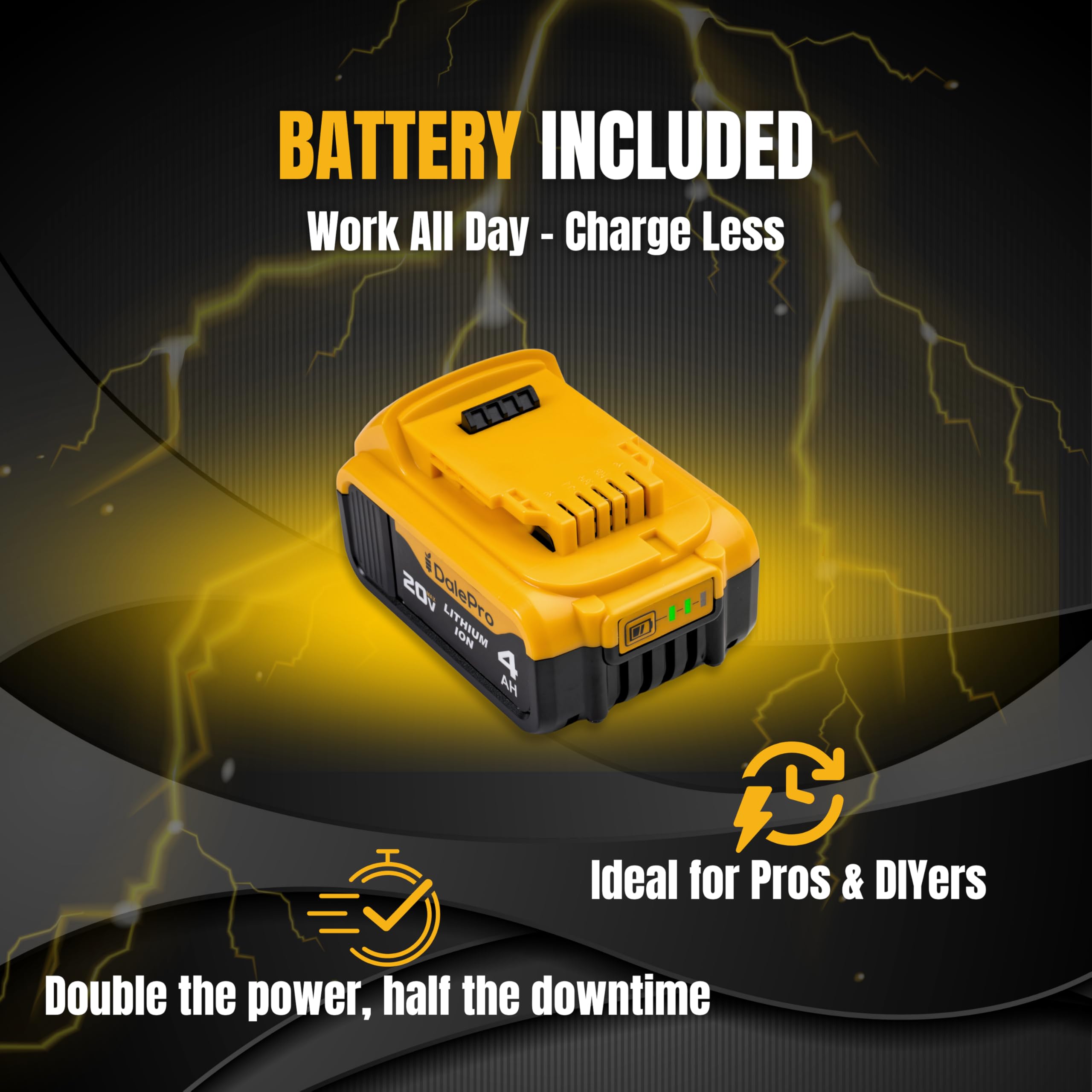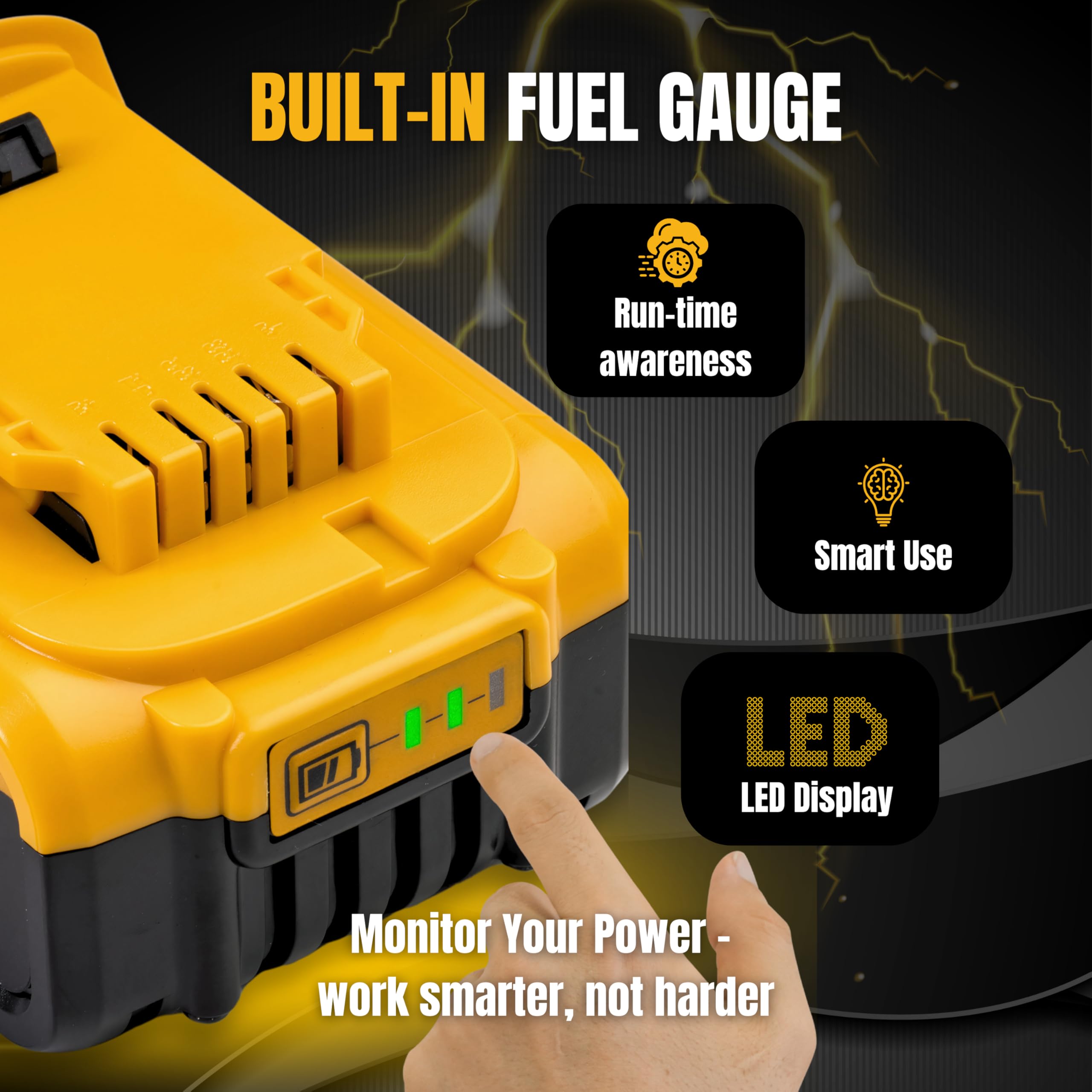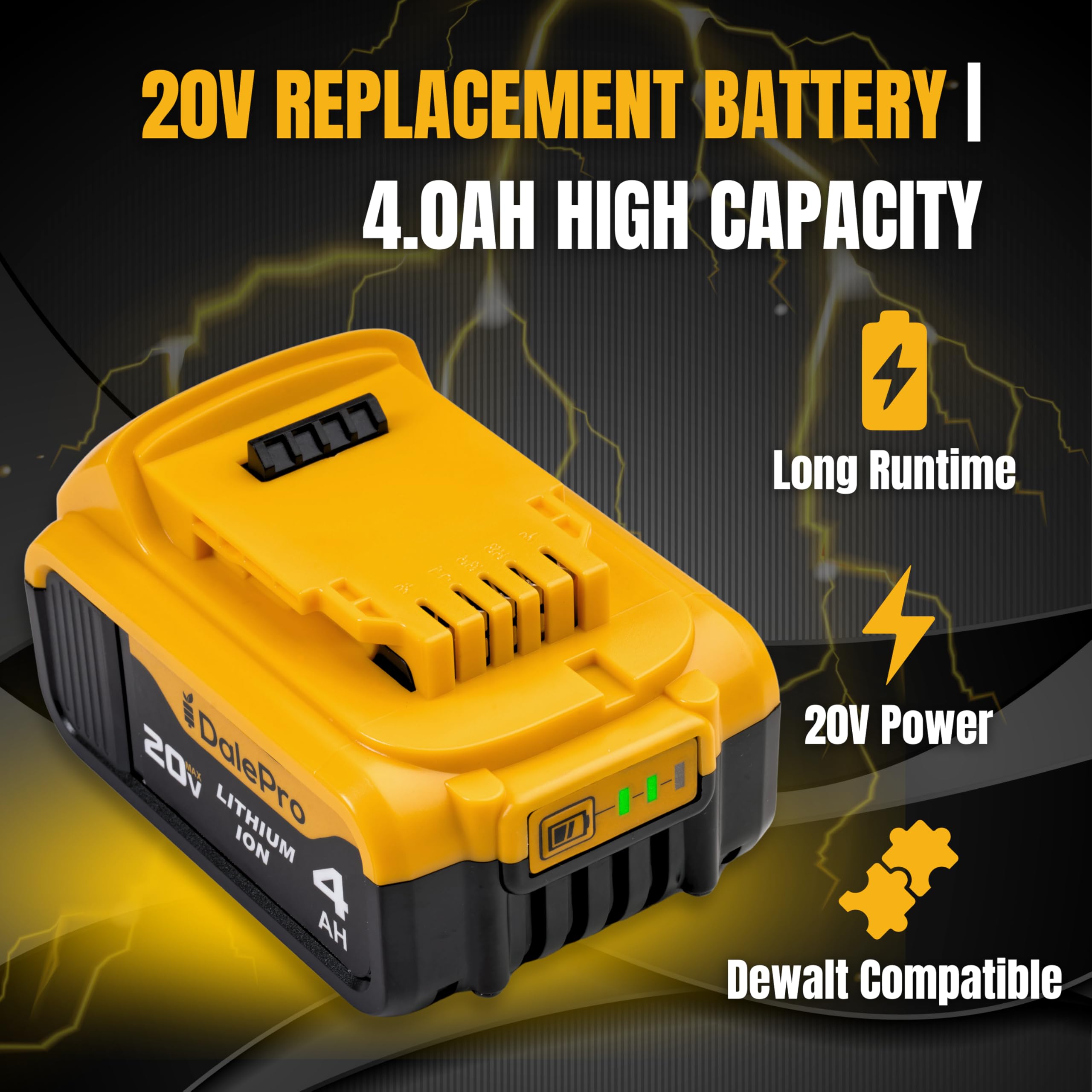 reliability. Perfectly compatible with a wide range of 20V Max cordless tools, this high-capacity compatible 20V battery ensures you get the job done without interruptions. ⚡ Key Features: ✅ [Specification] – This replacement battery 20V features a high-capacity 4.0Ah (4000mAh) lithium-ion design that provides longer-lasting power compared to standard 2.0Ah models. Comes in a to keep you powered throughout the workday. ✅ [Compatibility] – 100% compatible battery 20V, seamlessly working with 20V Max cordless tools and chargers, including DCB206-2, DCB205-2, and DCB203-2. Perfect fit for anyone looking for a 20-volt battery replacement. ✅ [Fuel Display] – Stay in control of your power! The onboard fuel gauge lets you monitor the remaining runtime, reducing downtime and ensuring uninterrupted workflow. A must-have feature in a compatible battery 20V. ✅ [High Performance] – Built with premium-grade battery cells, this 20V battery delivers up to 3X more runtime than standard 2.0Ah batteries. Whether you're handling heavy-duty tasks or need extended performance, this 20-volt battery replacement is built to last. ✅ [After Service] – Need assistance with your replacement 20V battery? Contact us via Amazon message or email, and our team will resolve your issue within 24 hours. Reliable support for your compatible 20V battery, ensuring a smooth and hassle-free experience.