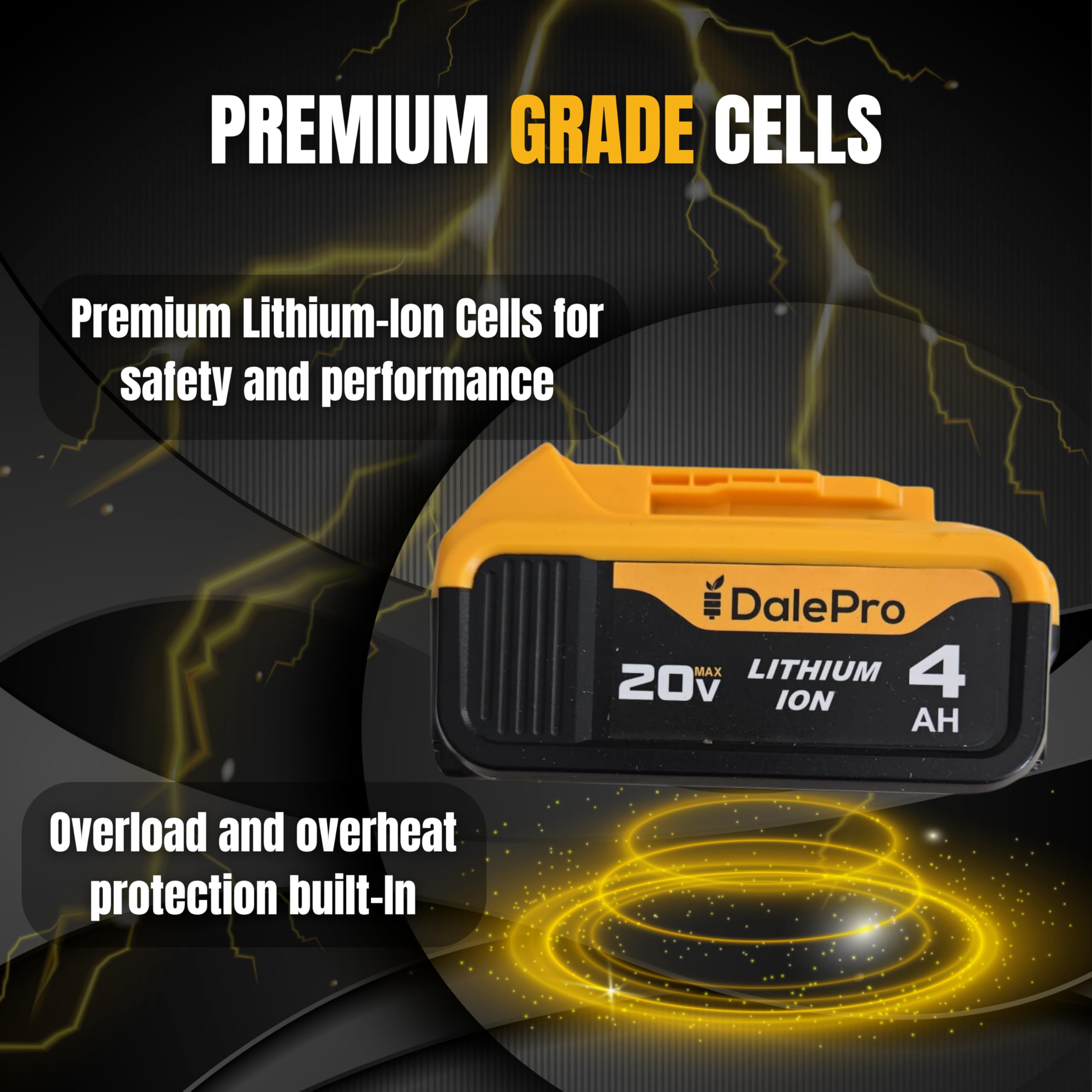 ✅ [Specification] Replacement batteries 20V compatible with Dewalt | 4.0Ah/4000mAh Li-ion | Built with high-quality battery cells for maximum performance | Comes in a for extended power supply | Fully compatible batteries 20V tools.