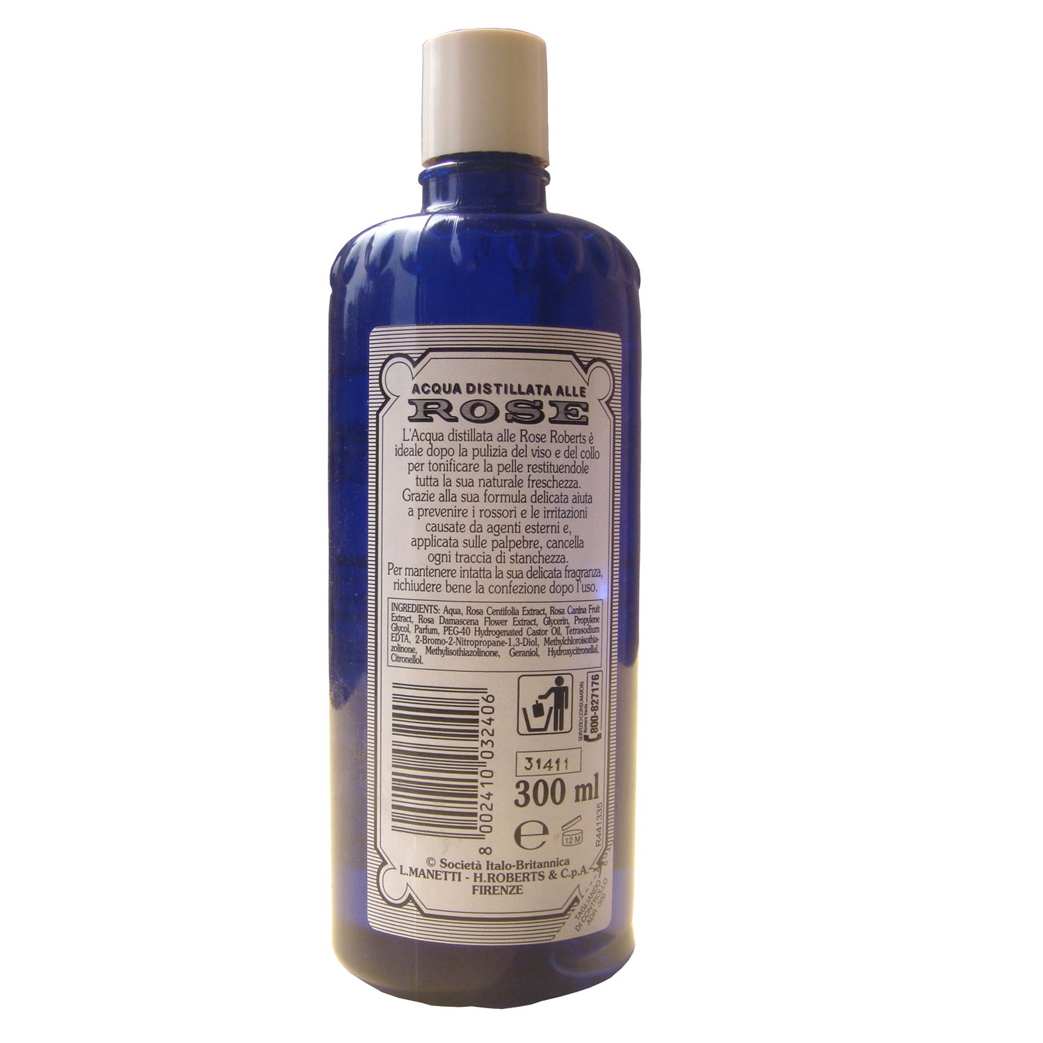 Triple Distilled Italian Rosewater. Created with the pure essence of the Centifola rose and distilled in spring water. Used for toning skin during or after bathing. Also lovely for laundering lingerie and fine undergarments.