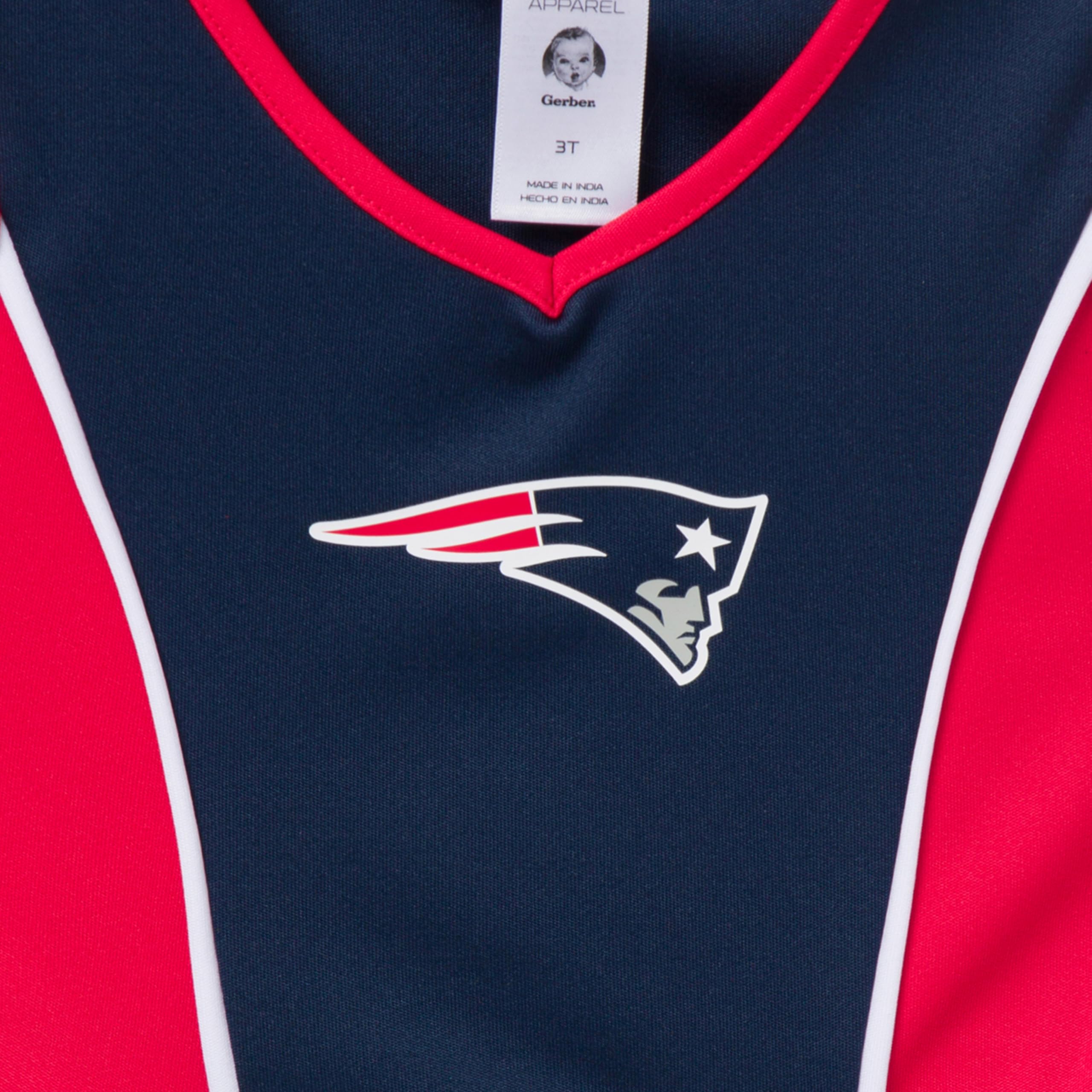Official Patriots Graphics – Features a large New England Patriots logo at the center of the dress.