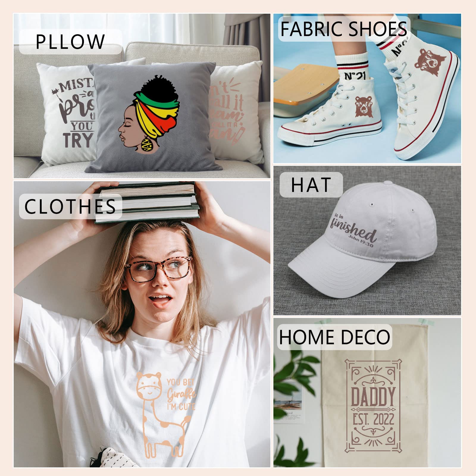 【Mutil Application】This HTV Vinyl Can Be Use to Do Your Own Design of T-shirts, Shoes, Caps, Coffee Bags, handbag, Pillows . it Can Also Be a Gifts to Your Friends Who Interested in Diy Creations