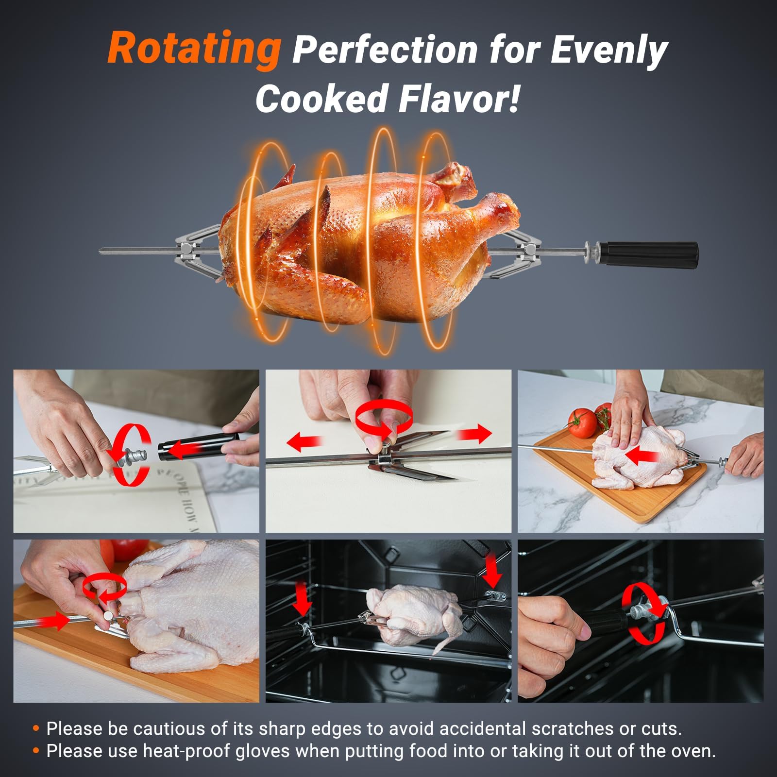 [360° ROTATING ROTISSERIE]With the upgraded rotating grill fork and top and bottom heating elements, you can cook evenly and make delicious meals for the whole family, like perfectly roasted chicken, succulent ribs, and more. The precise temperature control technology ensures perfect roasts, bakes, and grills every time, from slow roasting to high-temperature grilling.