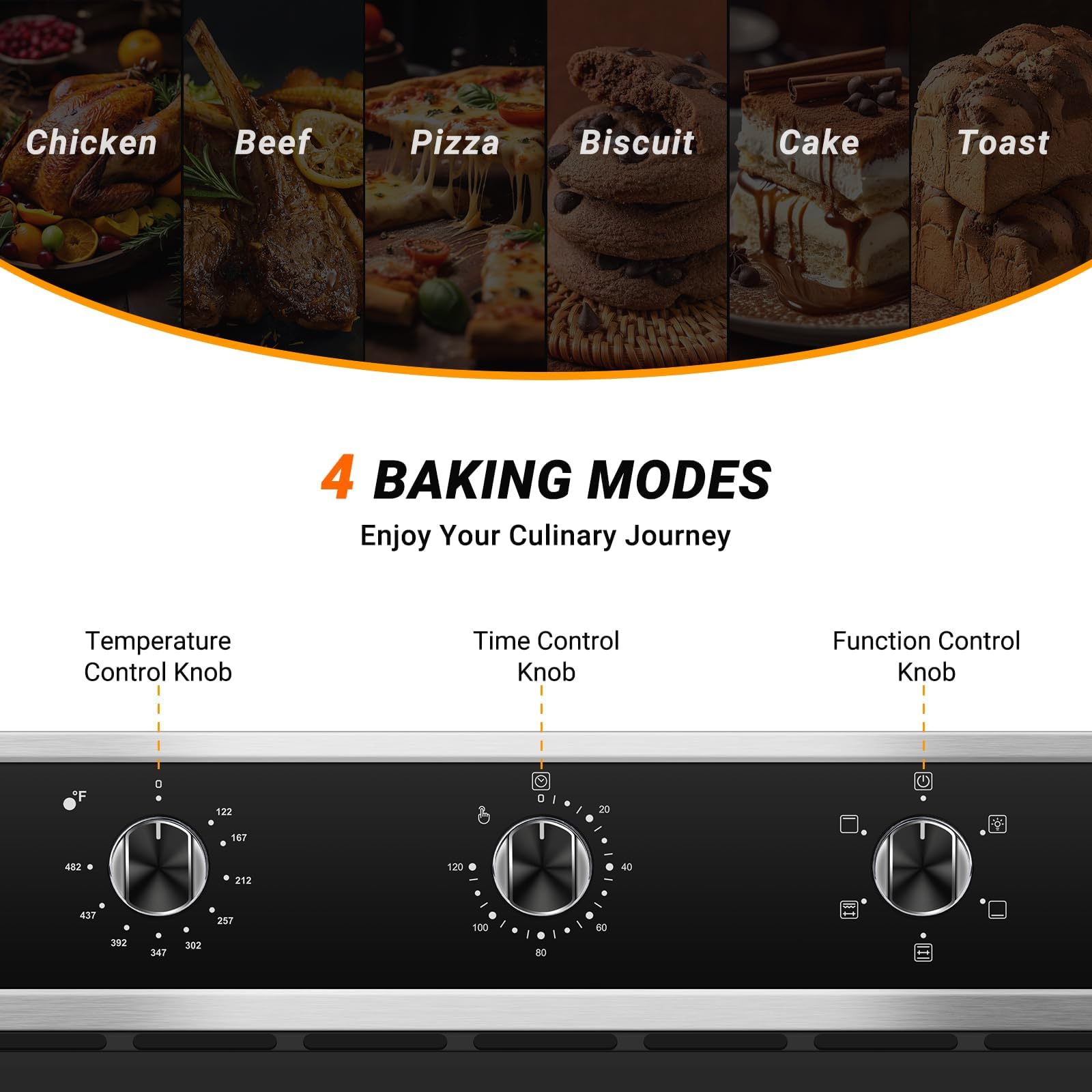 [MULTIFUNCTIONAL 24 INCH OVEN] Unleash your creativity with 5 baking modes that cater to all your DIY baking needs, giving you full control and flexibility. The user-friendly knob controls make it easy to adjust the temperature and function, ensuring that your culinary creations are always cooked to perfection, letting you effortlessly explore various culinary techniques.
