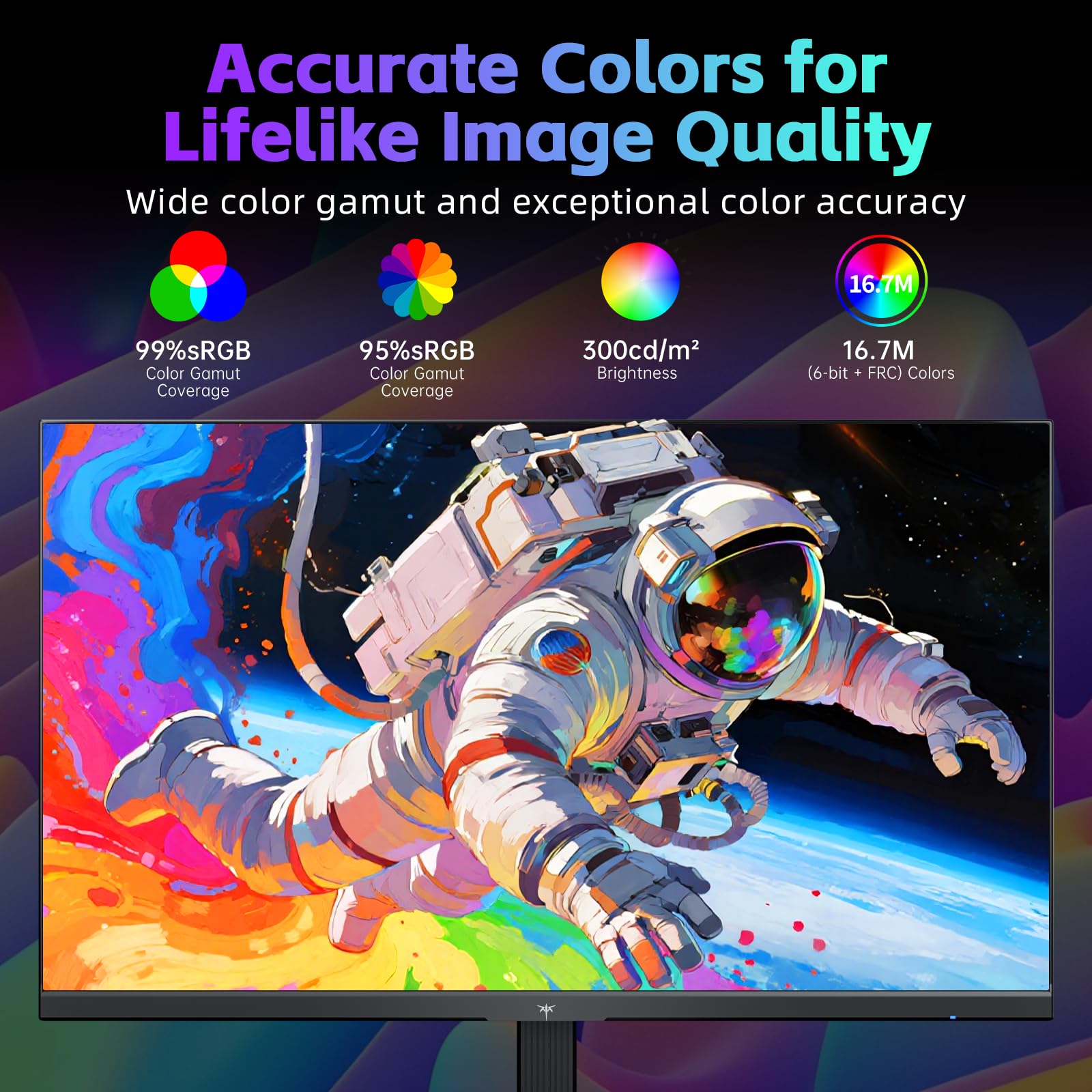 Full HD Resolution: KTC 24 inch monitor 144hz boasts 1920x1080p resolution and 16:9 aspect ratio, delivering stunning, high-quality images with rich detail.